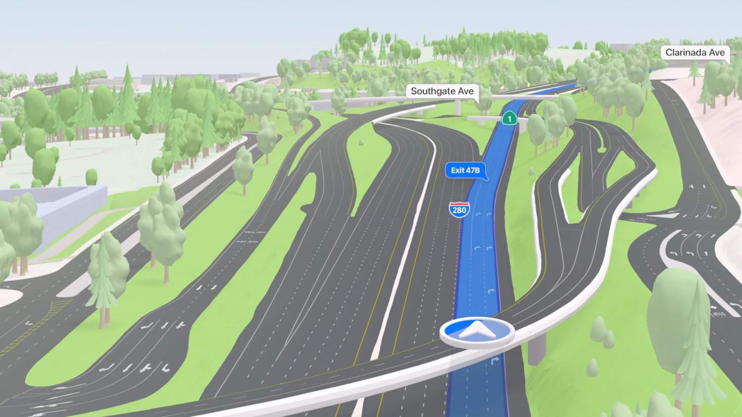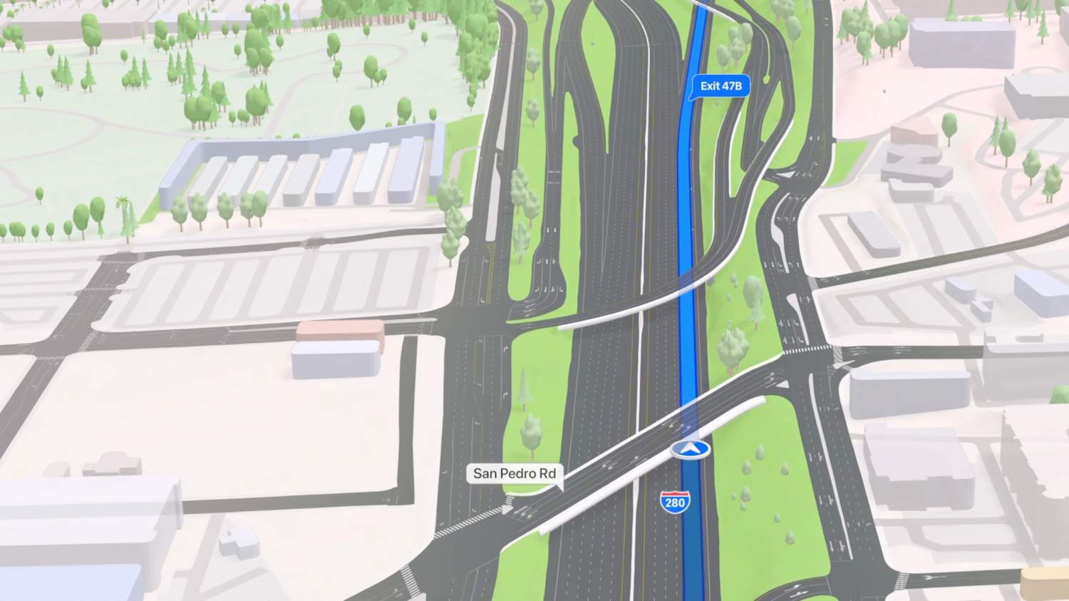 Apple Maps has a fancy 3D-like mode that allows you to explore the world in Apple's chosen aesthetic. There's a new navigation view able to render overlapping, complex interchanges for drivers. This latest update also adds an augmented reality system where the user can scan a building and attain walking directions based on where Apple Maps believes you are.