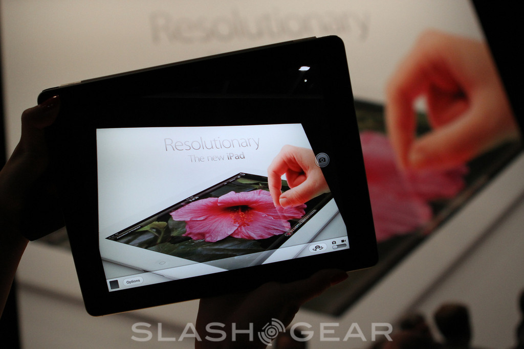 "It's Resolutionary" Apple says of the new iPad, and we have to agree. We've just grabbed some hands-on time with the new Retina Display iOS 5.1 tablet, and the difference from the iPad 2 – which, remember, stays on sale alongside it – is vast. The pixels in the 2048 x 1536 display are, at regular arm's length, completely indistinguishable: it's only when you get up close that you can make them out.UPDATE: SlashGear's review of the new iPad here.