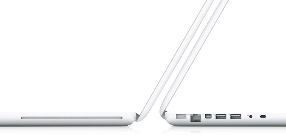 The new 13.3-inch MacBook keeps the same polycarbonate plastic as its predecessor but pairs it with a new, LED backlit display, built-in battery (that Apple rate for up to 7hrs use) like the MacBook Pro range, and a glass multitouch trackpad. Only one model will be on offer, with an Intel Core 2 Duo 2.26GHz processor, 2GB of RAM, NVIDIA GeForce 9400m graphics, 250GB hard-drive and a SuperDrive. The price is also staying the same, at $999, and it's available today. Hands-on, it's a more rounded casing than the last-gen model and it drops weight, too: 4.7lbs versus 5.0lbs of the previous MacBook. The newly bare, unibody-style base panel has now got a non-slip coating, too, and the whole thing feels far slicker and like the MacBook Pro range.