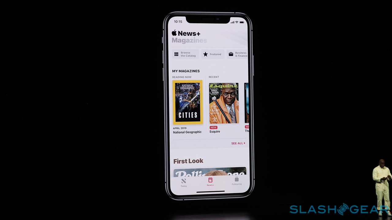 The Apple News+ experience will be integrated with the Apple News app. In the app there'll be three tabs, including Today, News+, and Following. And it was presented onstage on an iPhone first, iPad second. But don't let that fool you – it's a system made to work on both platforms, right out the gate.