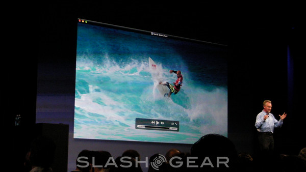 Thumbnails have been improved, with browsable PDFs, playable videos and deeper Stacks which can handle content. PDFs also have better text selection, while QuickTime X supports color sync, hardware acceleration, HTTP streaming and compatibility with any server based on the HTTP standard. The UI of QuickTime has had a makeover too, with controls and borders fading away to leave only the video content itself. Simple video edits can be made directly in the QuickTime window, by dragging the ends of the clip region, then exported to MobileMe and shared.