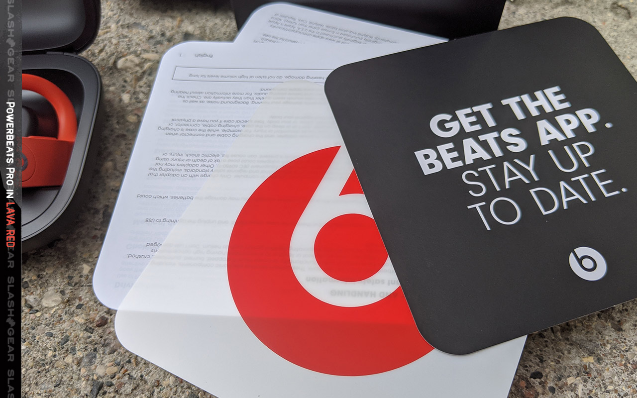 Inside the (hard plastic) case you'll find the buds and a note that, to pair, one should keep the buds in the case. The whole experience looks and feels like a proper Apple product. They're still not AirPods, but they'll definitely do the trick – especially if you're all about that extra element of security with the over-ear rubber afforded to you by the industrial design of Powerbeats Pro.