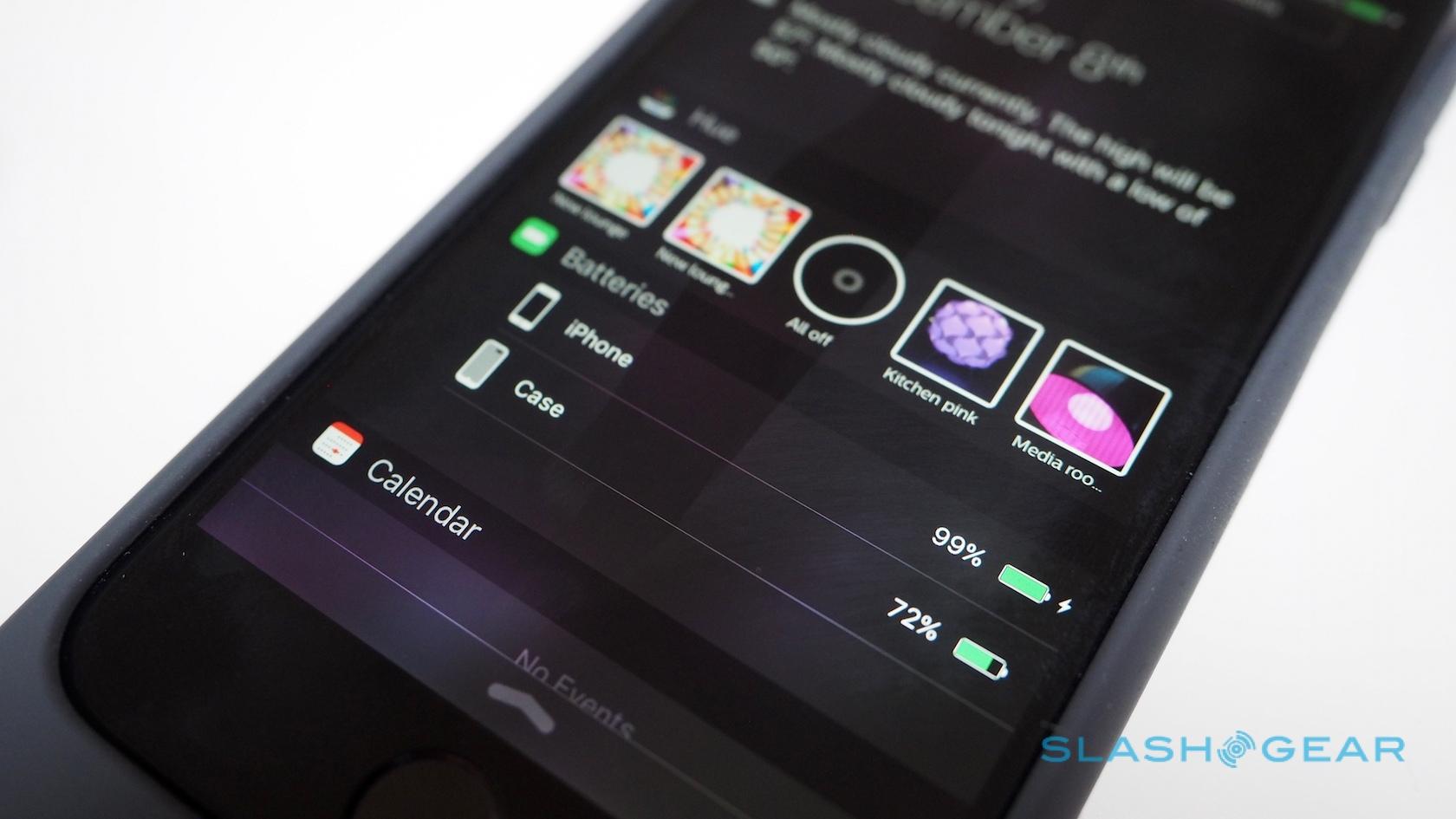 It also gives you battery status in the iOS notifications; on the flip side, the Mophie has a manual switch to control whether the case's power is being used (something Apple doesn't allow you to do) and a four-LED power gage that, though less accurate than Apple's percentage, can at least be checked without your iPhone needing to be in the case and turned on.