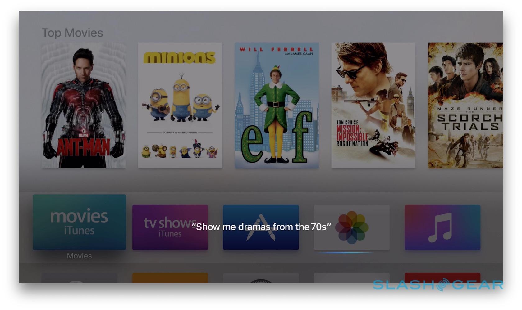 Apple's fourth-generation Apple TV boosts performance and bakes in Siri, with voice search across not only iTunes but Netflix, Hulu, and several other services. A new Siri Remote connects via Bluetooth and features a pair of noise-cancelling microphones along with a trackpad.