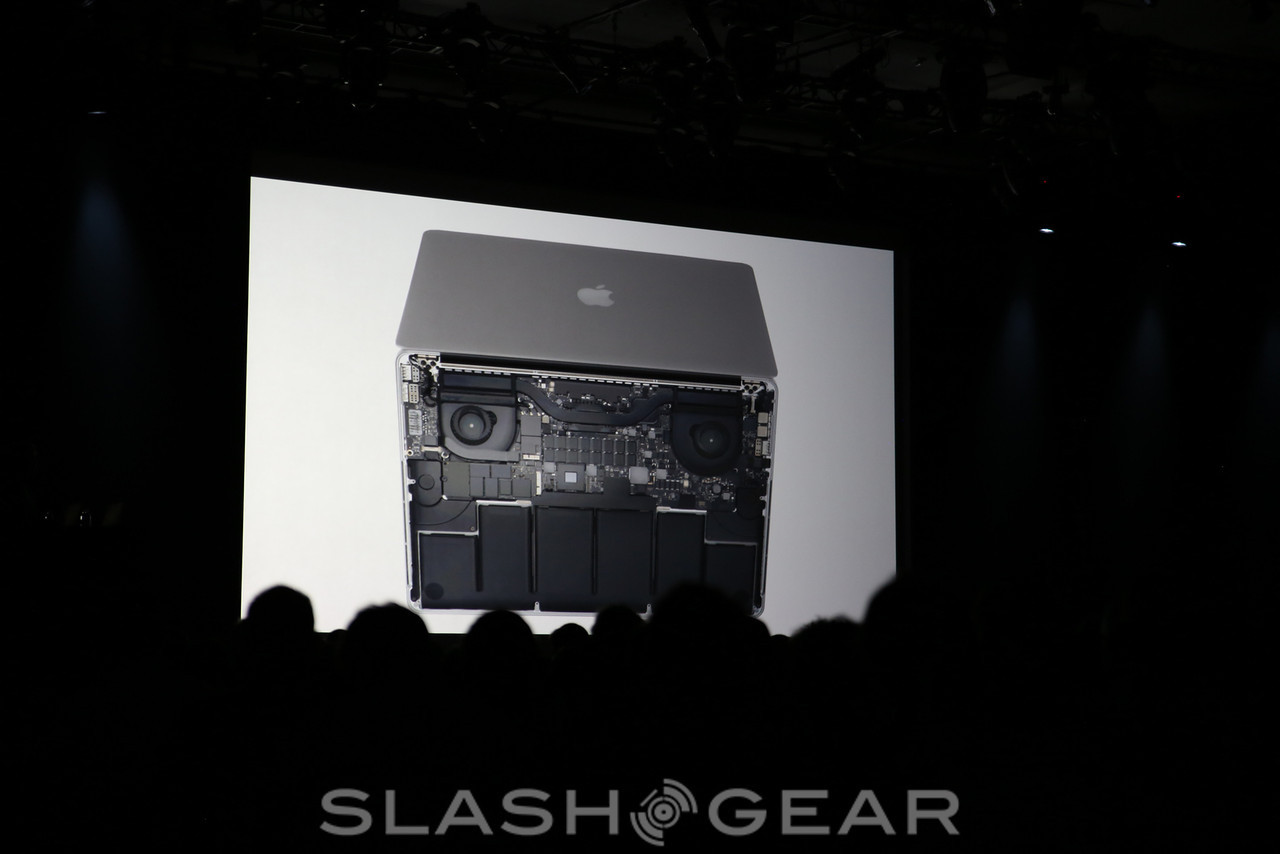 Apple also reworked the internals of the machine in order to pack as much inside a slim a chassis as possible. The company says trying to drive the display on top of the raw specifications proved a challenge, but they added extra batteries to make it happen. The next-gen MacBook Pros are rated for up to 7 hours of battery life, and 30 days of standby time. Finally, Apple has included a FaceTime HD camera, dual microphones, a backlit keyboard, and "the best stereo speakers" the company has ever put into a notebook.
