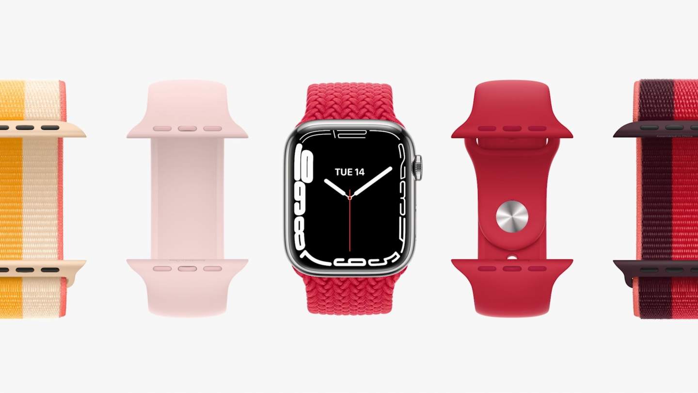 The new Apple Watch was revealed today with an updated industrial design. This new Apple Watch Series 7 is significantly larger than its predecessor, with 40% thinner borders than its predecessor and a "refined" casing. The new Apple Watch Series 7 is "up to 70% brighter" than its predecessor, too.