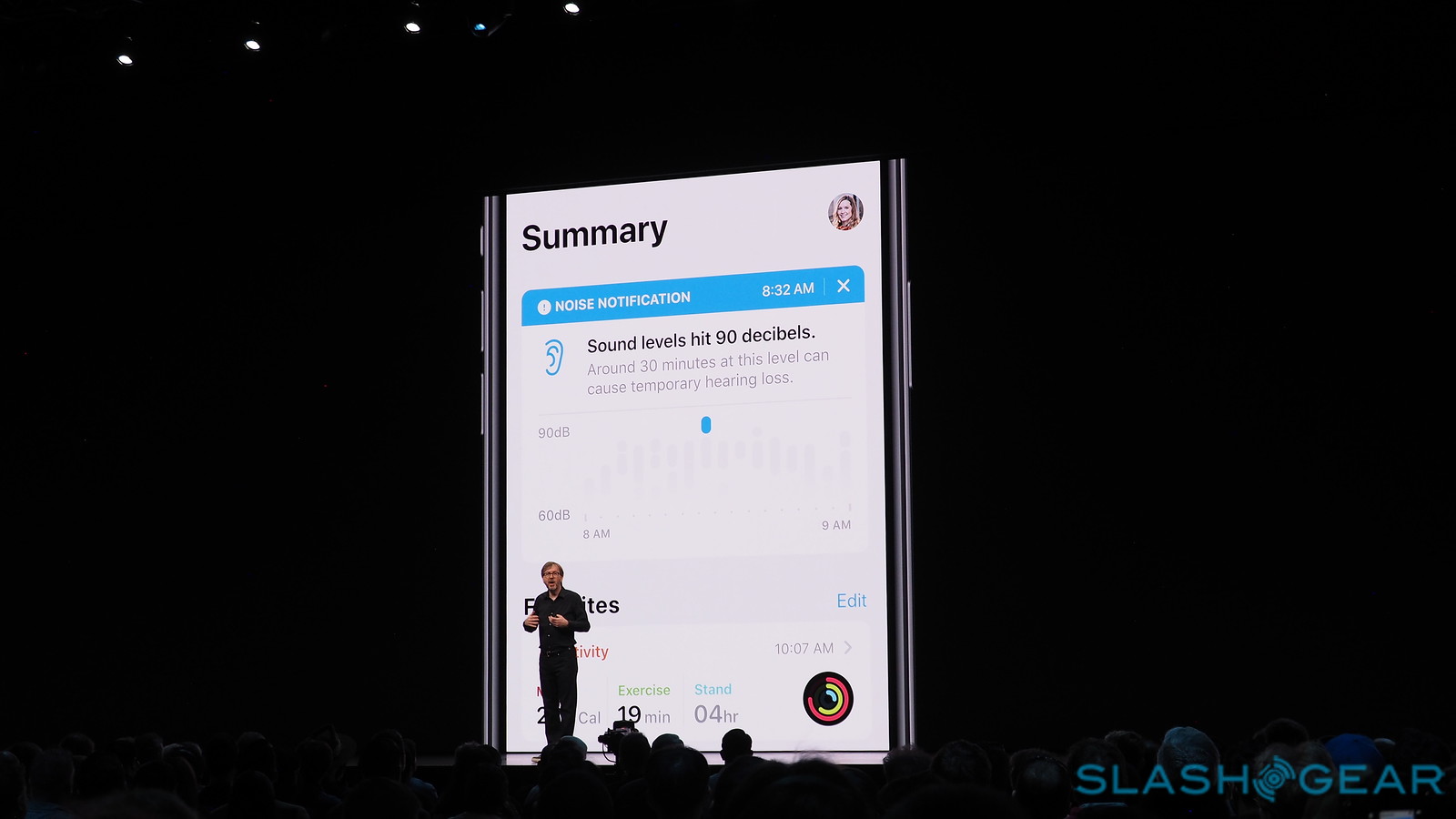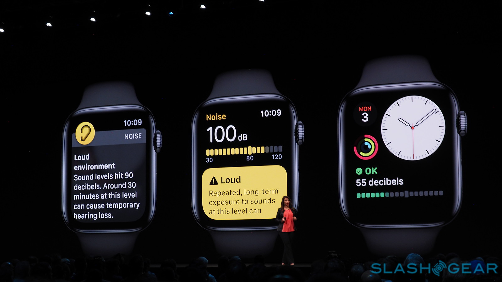 Apple introduced Hearing Health with the Apple Watch this week as well. The watch will listen in to the local sound level and will let you know if the dB (decibels) are too high. If you're about to hit 90, for example, you're not going to want to stick around, or you'll risk hearing loss.