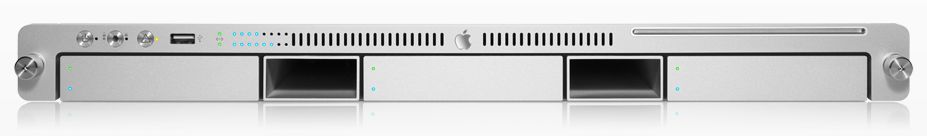 Connectivity includes two x16 PCI Express 2.0 slots (one 6.6-inch half-length, one 9.25-inch), two rear FireWire 800 ports and three USB 2.0 ports (one up front, two on the back). There's also an RS-232 serial port. Each runs Mac OS X Server v.10.5 unlimited-client edition and supports Intel Turbo Boost and Hyper-Threading.