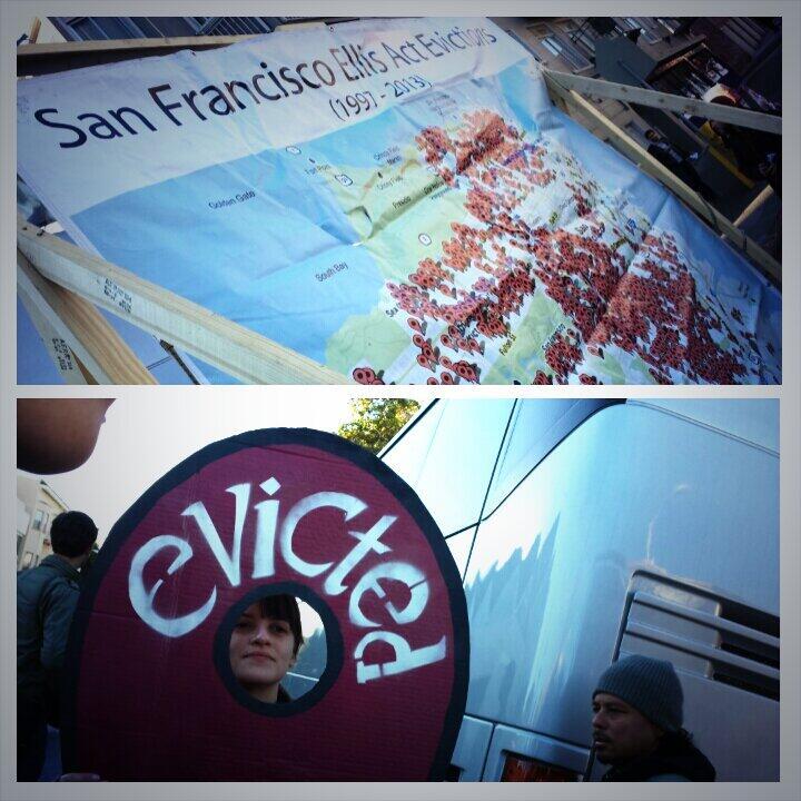 Steinmetz also provides a photo of the "Evicted" Google Map marker signs the protesters are suggesting are used to mark evictions. These markers are also handily placed on a San Francisco Ellis Act Evictions map shown from 1997 through 2013.