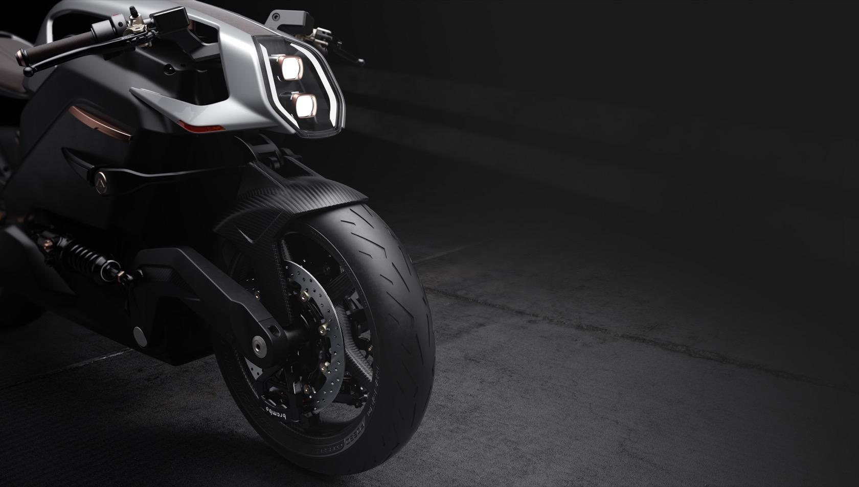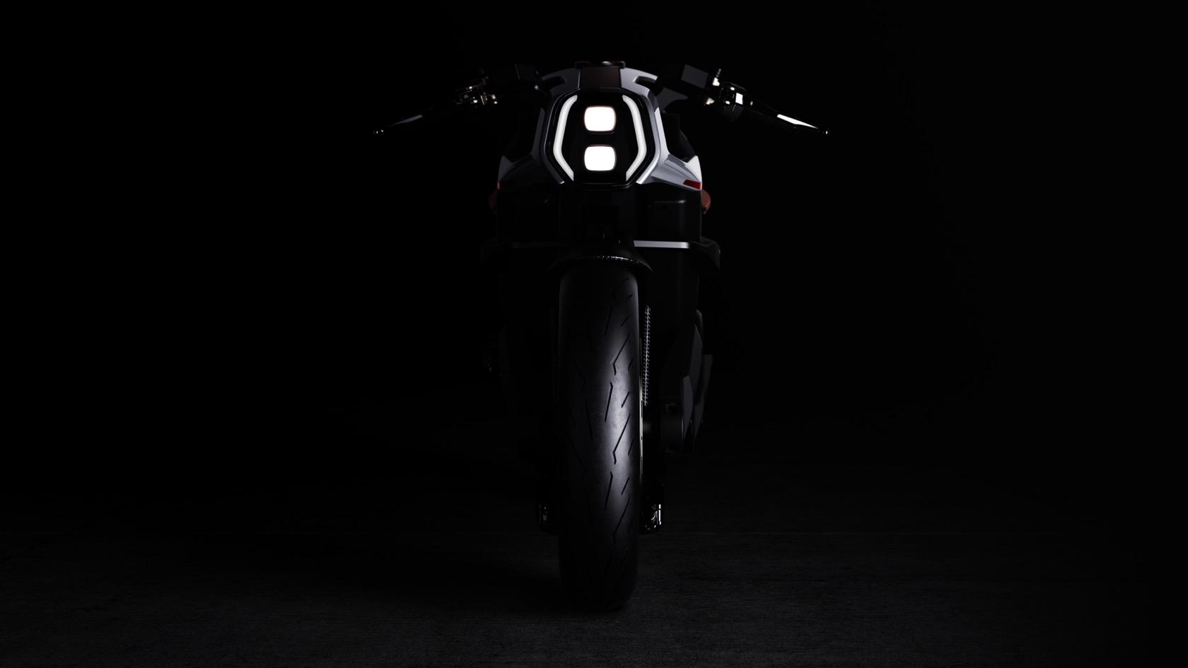 It's been designed with the human machine interface in mind from the outset. The bike itself is super-lightweight, using carbon-composite and other featherlight materials, while instrumentation is shifted from the handlebars to the helmet. That has a head-up display and an integrated rear-view camera.