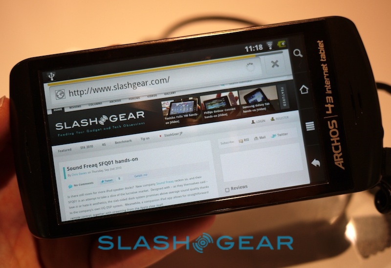 Of the three, the Archos 43 is the most successful, though the company's choice of a resistive rather than capacitive touchscreen may lose them sales in comparison to the iPod touch. Still, you get a bigger display than the iPod, larger than most smartphones in fact, and the functionality is packed in too: 720p video recording and playback (with a camera on the back), an HDMI output, up to 16GB of storage (with a microSD slot) and the same processor as in the bigger Archos 70 and 101. That keeps things moving swiftly, and it's actually a decent browsing experience (and will be improved with Froyo and its Flash Player 10.1 support).