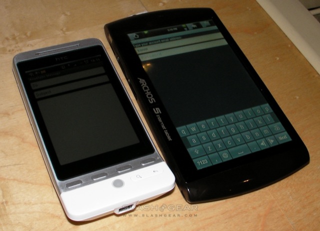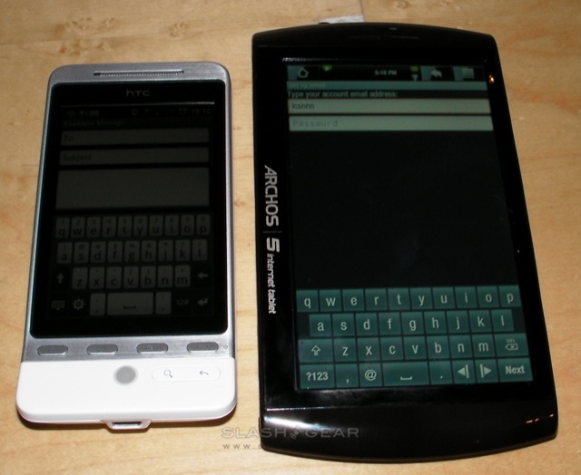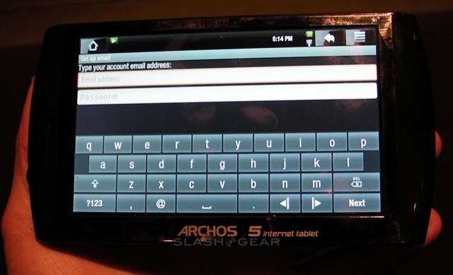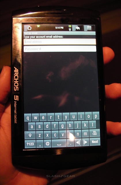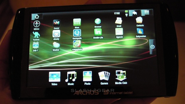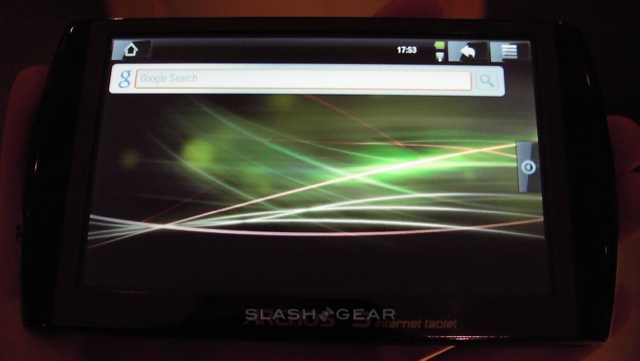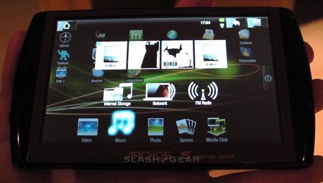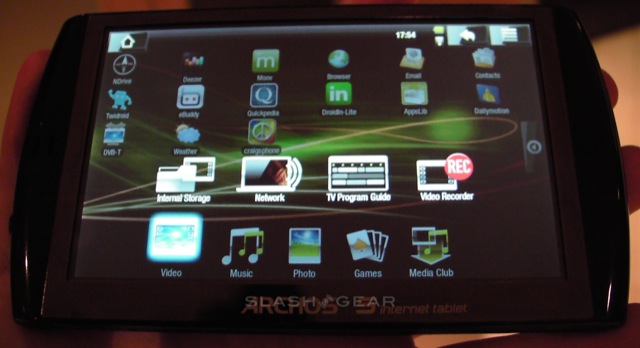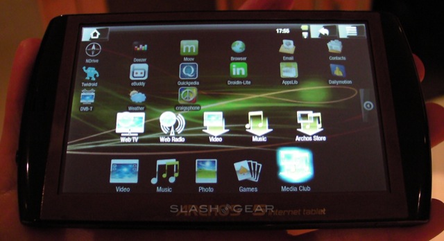SlashGear stopped by the Archos launch event last night for the company's new Android-powered Internet Tablet, the Archos 5. The idea is straightforward: all of Archos' usual media-centric abilities are there, including broad codec support and the ability to play local and network-based content, but rather than their home-grown Linux-based OS the French company has turned to Android and a custom UI shell.Hands-on video and gallery after the cut