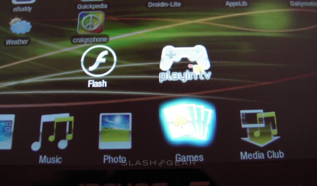 Still, since this is Android there are apps to be had, though Archos would prefer you to source those through their own AppsLib store (which features software fettled for the larger display). While we've heard that the regular Android Market will be available on the Archos 5, there was no sign of the icon on the test units we played with. There's also no Gmail app, though you do get a regular Mail app which supports POP, IMAP and webmail (though not Exchange). Archos have also cherry-picked a selection of apps to preinstall, including Twidroid and a new MP3 download store.