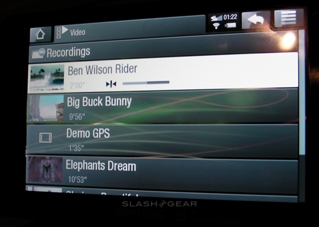 As you'd expect from a media-centric company, the Archos 5 concentrates its efforts on audio, video and picture playback. As well as being capable of 720p output via HDMI, there are various docks on offer including a DVR Station which allows you to record VGA-quality TV and other video directly onto the PMP's internal storage. Alternatively you can surf the web at 1,280 x 720 resolution on your HDTV, with either the optional ultra-thin QWERTY keyboard (which wasn't on hand last night for us to try out), Archos' existing mini-keyboard remote, or the on-screen 'board (or indeed any Bluetooth keyboard and mouse).