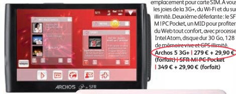 Those prices both seem pretty steep, though there's no indication as to whether they're contract-free or require a 12-24 month service agreement. If the latter, then it would've been nice for SFR to subsidize the Archos 5g a little more. No word on exact release date.