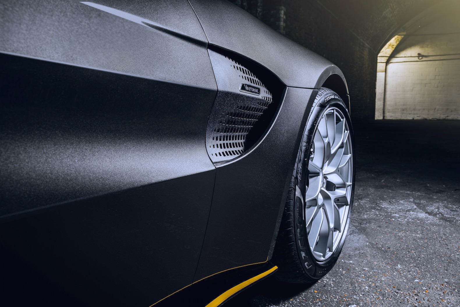 On the other hand, the Vantage 007 Edition is inspired by the original Aston Martin V8 which debuted in The Living Daylights. It also appears in No Time To Die as Bond's personal car. It has a bespoke mesh grille surrounded by a chrome bezel to reference the look of Aston's classic V8 Bond car. Finished in Cumberland Gray exterior paint, contrasting styling elements include a dashed yellow diffuser and an available 'winterized' pack which includes skis and a ski rack.