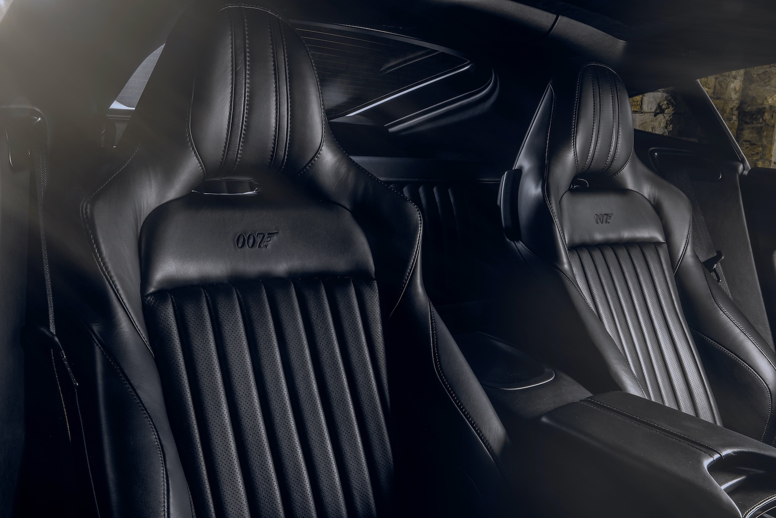 The interior is wrapped in Obsidian Black leather with dark chrome embellishments and subtle 007 brandings. The Vantage 007 Edition even comes with a laser-etched gadget plaque to mimic the weapons and gadgets of the original film car including virtual switches to control the missiles, rocket motor, and targeting display of the vehicle.