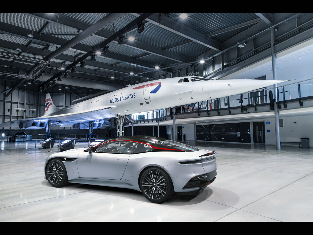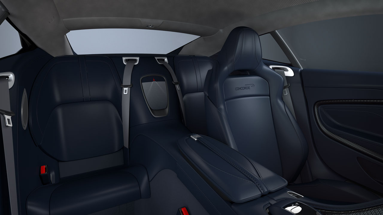 Aston says that it's fitting that Aston Martin Bristol commissioned the car as it is about the length of a runway from Aerospace Bristol, home to the last Concorde to fly. The car wears a livery inspired by the red, white, and blue colors of British Airwars. It has lots of touches to fit with the Concorde theme.