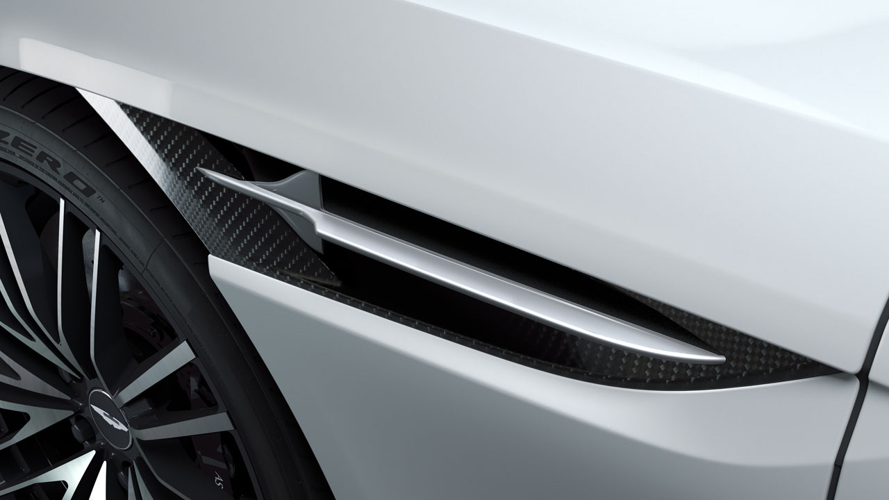 The custom touches include bespoke side strakes milled from solid aluminum. The black-tinted carbon fiber roof has a Concorde silhouette. The cars all feature inspection plates signed by Aston Martin Lagonda President and Group CEO Andy Palmer and British Airways Chairman Álex Cruz.