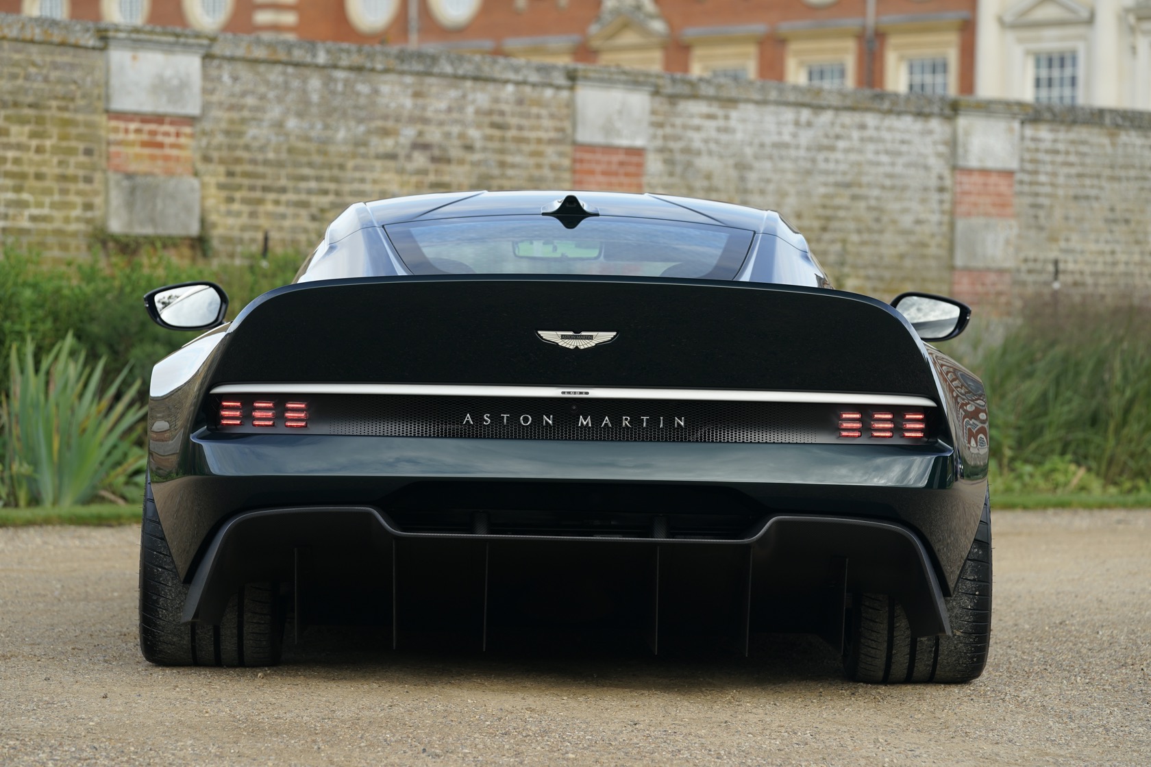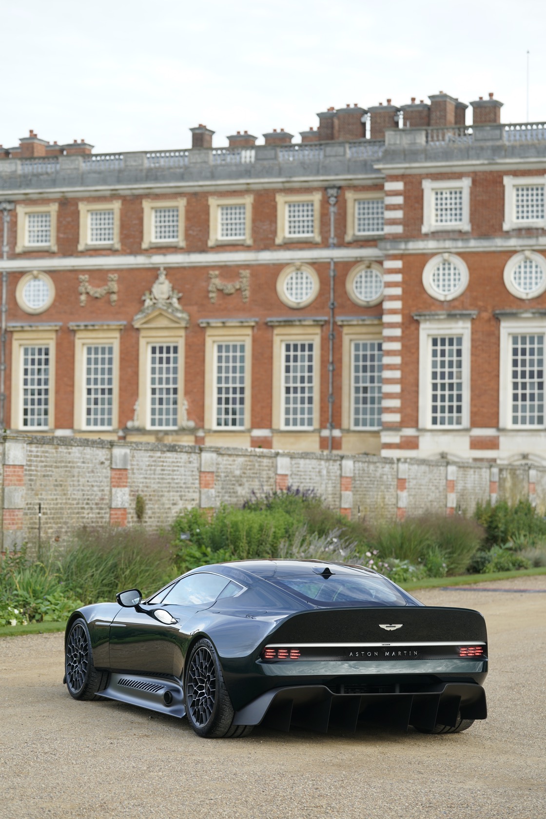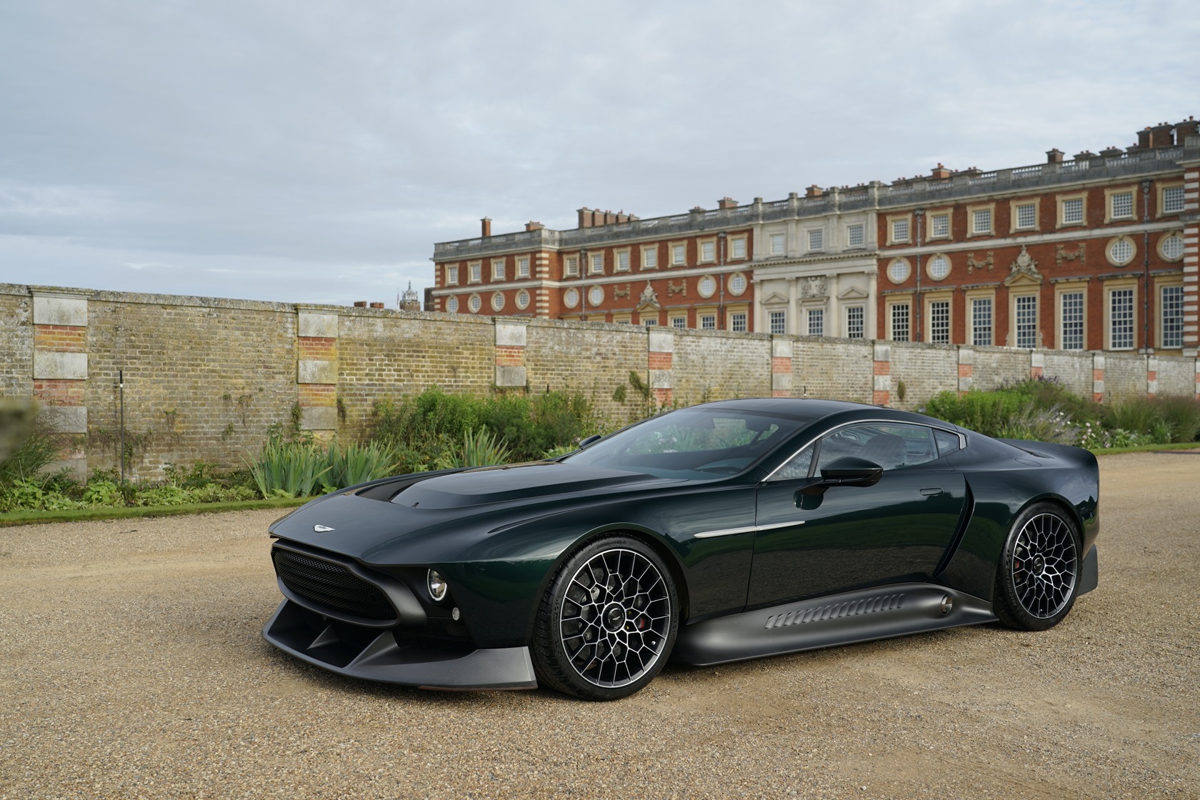 Outside, the dramatic styling is meant to call to mind the 70s/80s Vantage. Inside, there's a mixture of high-end leather, real walnut and cashmere, and exposed carbon fiber. Altogether it's a coupe like no other, both metaphorically and literally.