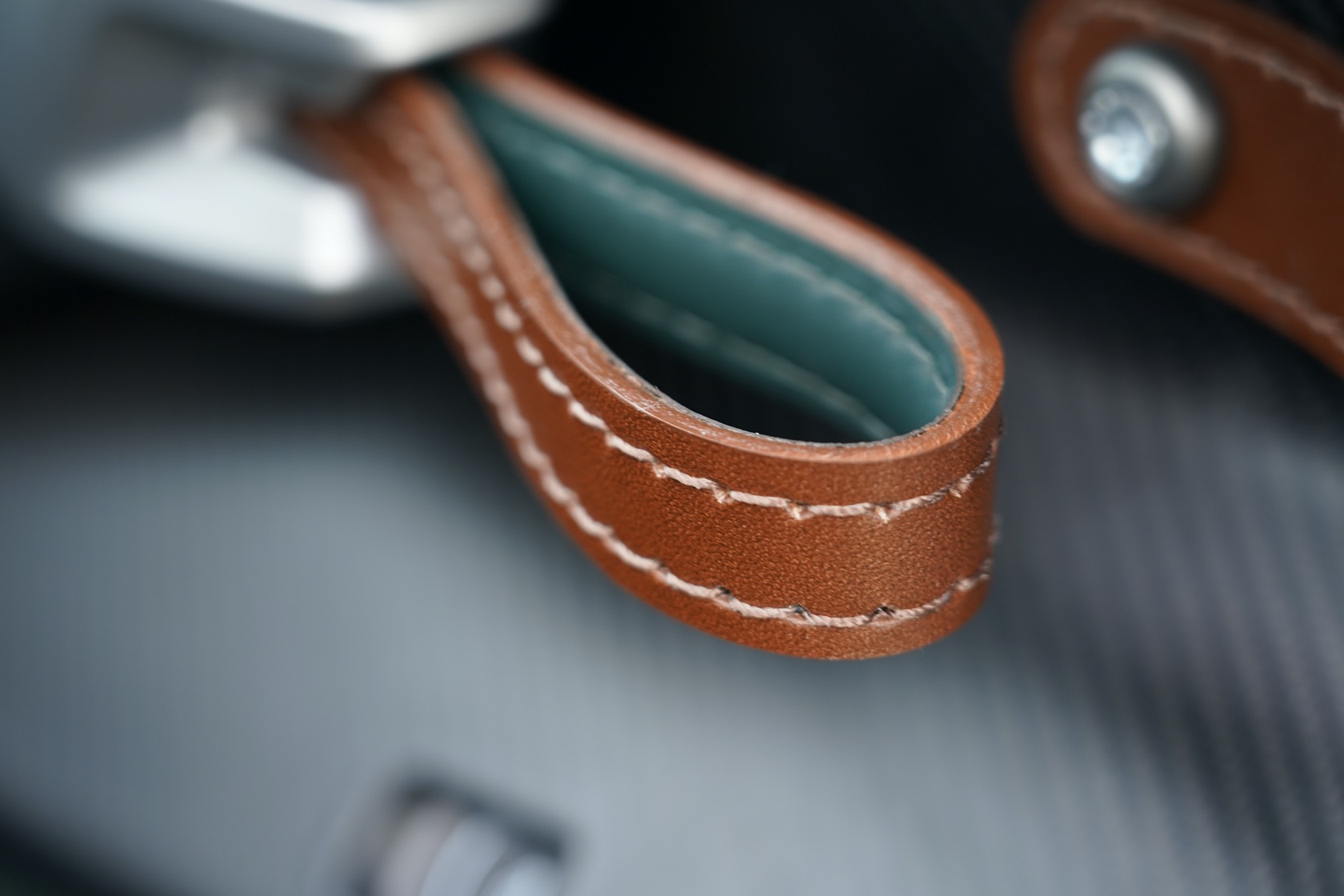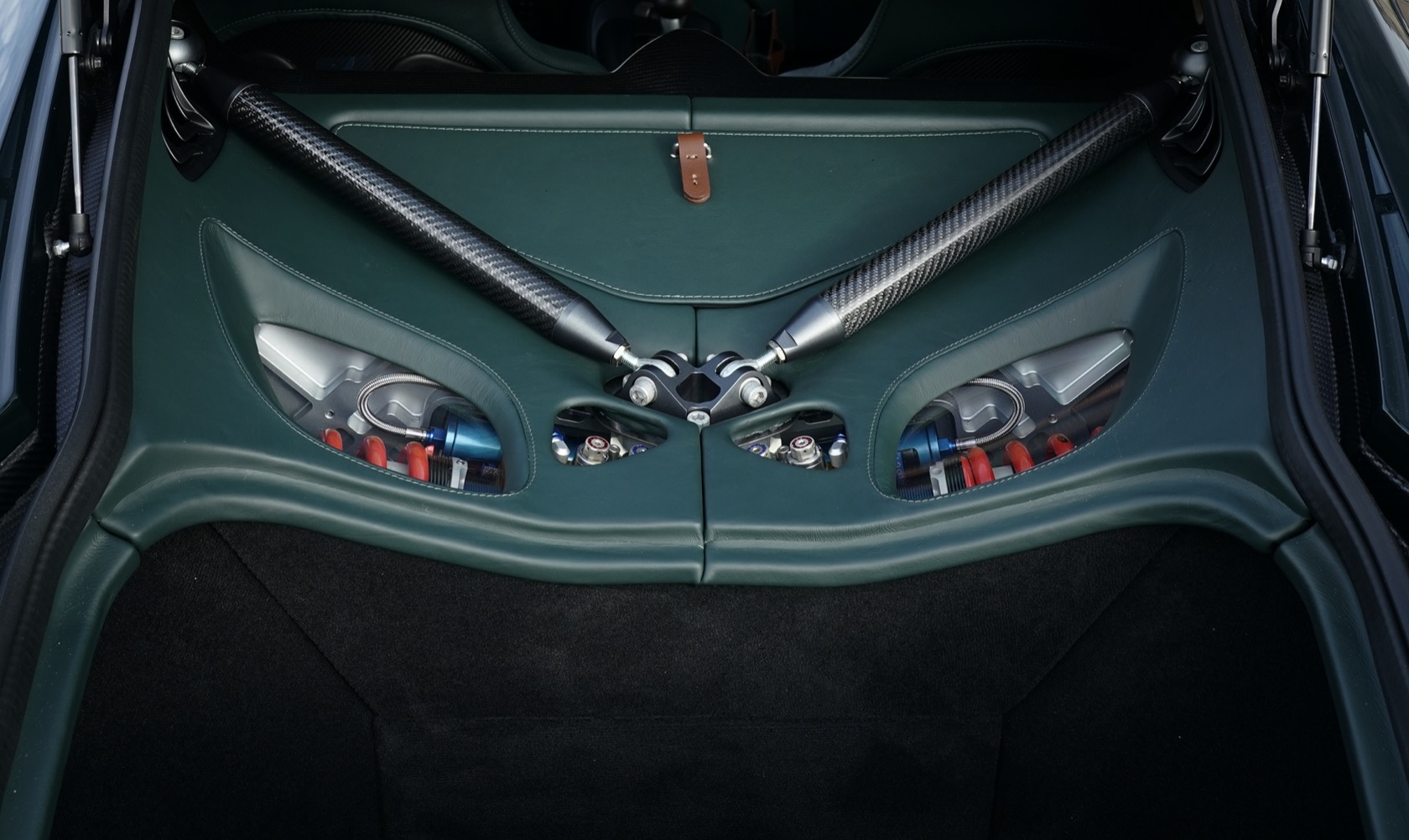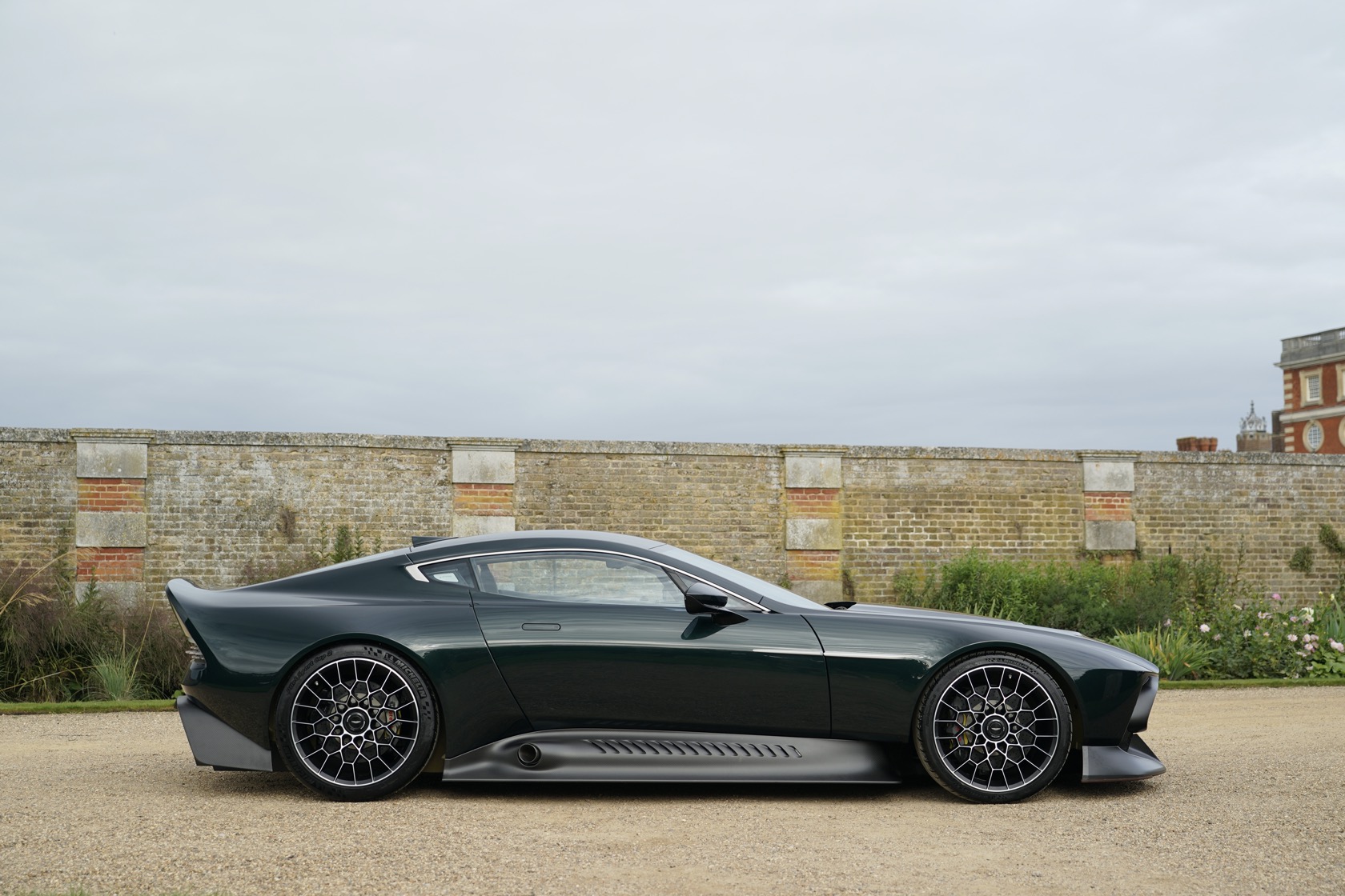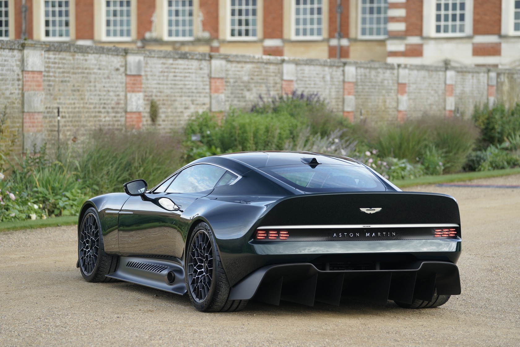 Outside, the dramatic styling is meant to call to mind the 70s/80s Vantage. Inside, there's a mixture of high-end leather, real walnut and cashmere, and exposed carbon fiber. Altogether it's a coupe like no other, both metaphorically and literally.