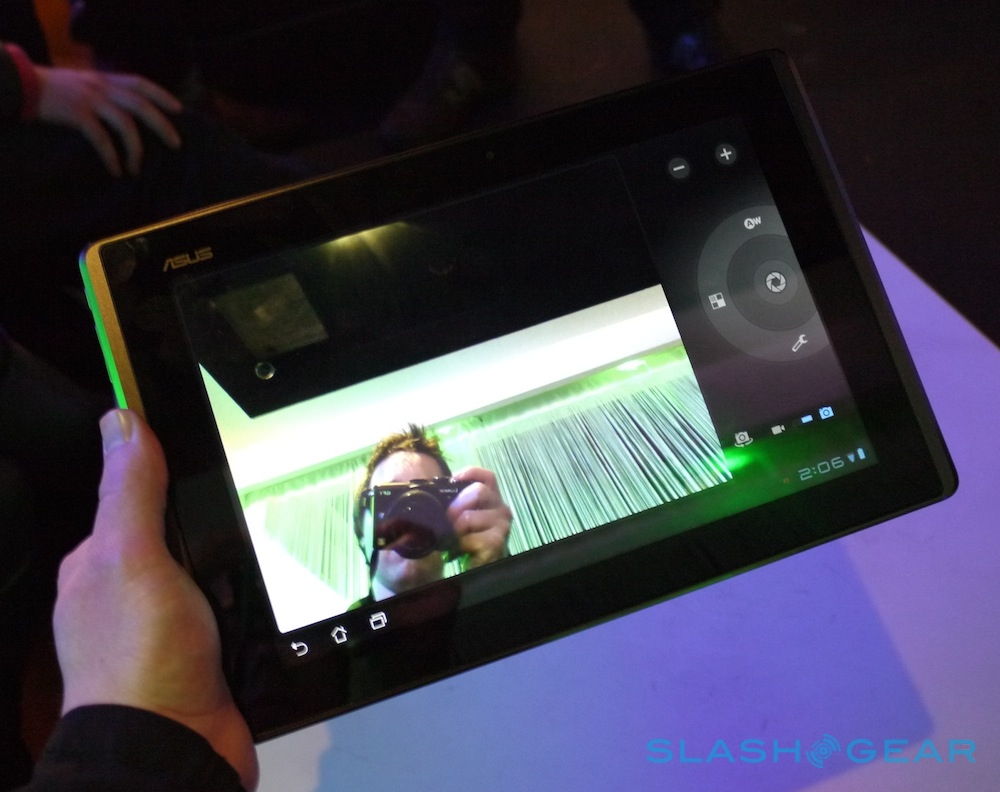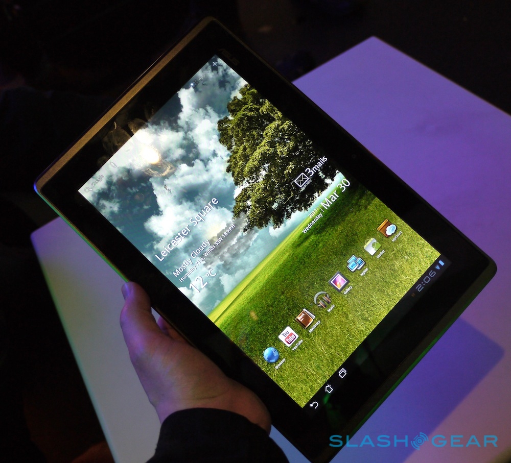 It's the display that's most impressive initially, however, a 10.1-inch 1280 x 800 IPS panel supporting 10-point multitouch and covered with a sheet of toughened Gorilla Glass. We can't say scientifically how it compares to the display on the iPad 2, but with incredibly broad viewing angles – we got almost side-on without seeing any color inversion – in all four orientations, and indecently rich colors, it's one of the best tablet displays we've seen to-date. Some of ASUS' demo units were a little finicky with their touch-responsiveness, but we're putting that down to calibration issues as it wasn't consistent across all of the Eee Pads.