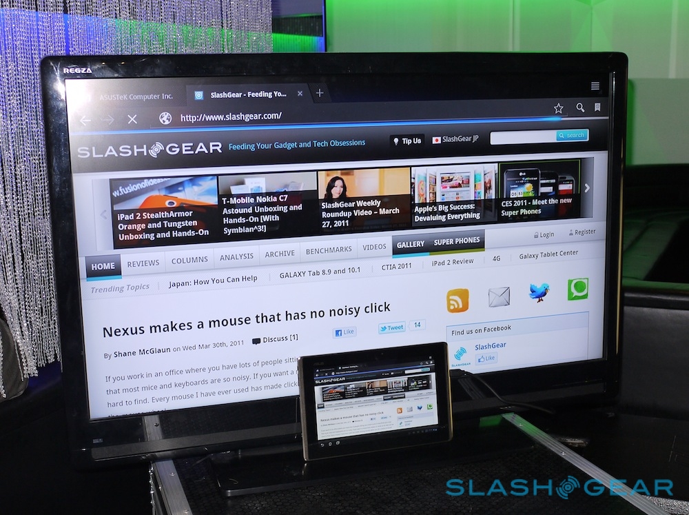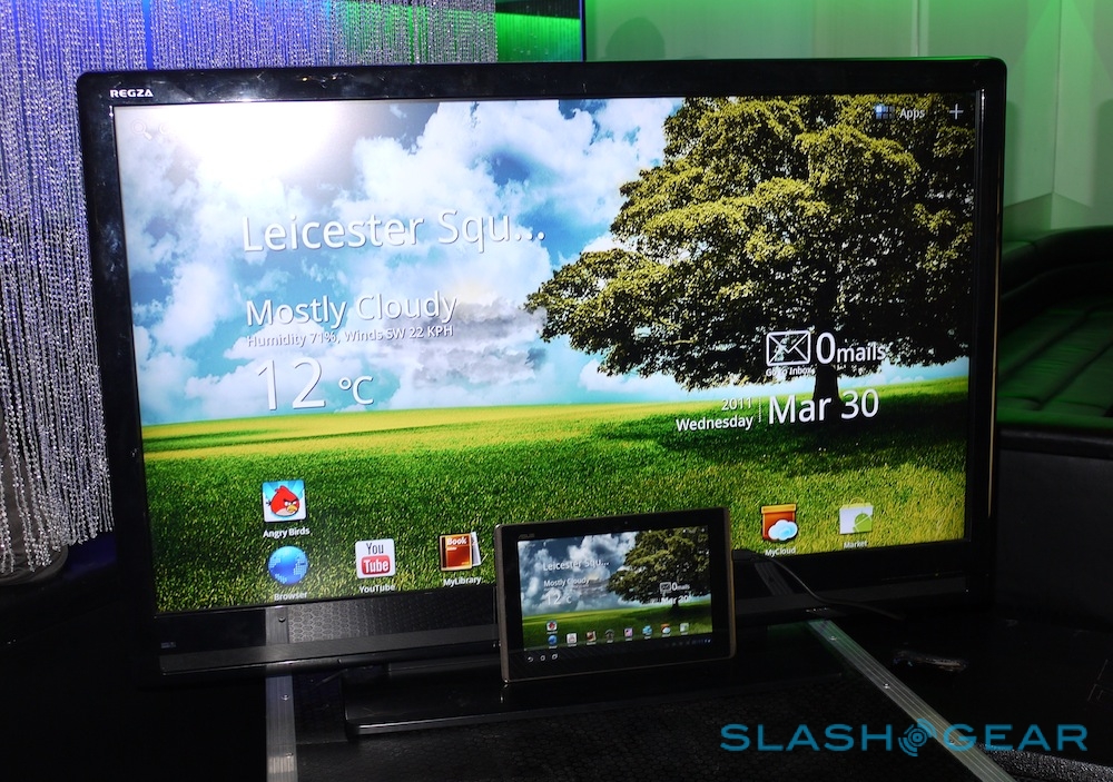 Performance was on a par with other Tegra 2 tablets we've used, with responsive pinch-zooming and apps flicking around neatly. The HDMI output upscales to 1080p nicely – browsing was particularly impressive on ASUS' big demo screen, though we also played a few sneaky levels of Angry Birds – though of course there's the DLNA support if you'd rather cut the cord.