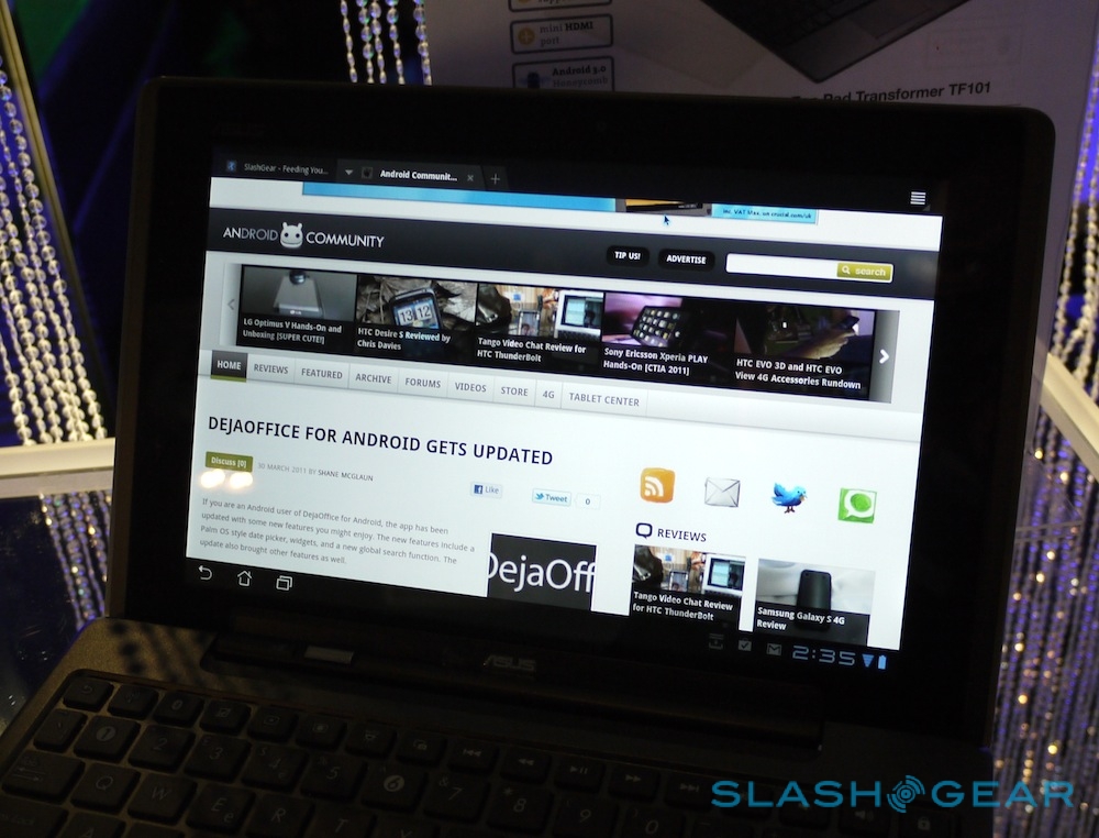 If you'd asked us yesterday which Android 3.0 Honeycomb tablet we were most excited about, we'd probably have said Samsung's upcoming Galaxy Tab 10.1, or maybe its smaller 8.9 sibling. Now we're not so sure. SlashGear caught up with ASUS today for the official launch of the Eee Pad Transformer, the company's 10.1-inch Tegra 2 tablet that can be optionally paired with a detachable, battery-toting keyboard dock. Announced back at CES 2011, and promptly lost amid the flurry of similar slates, it turns out that ASUS could well have a winner on its hands. Read on for our first-impressions.