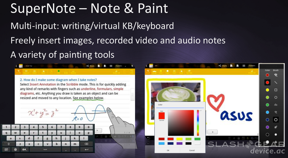 The Transformer Prime has SonicMaster technology to enhance its ability to blast out the audio. ASUS notes that it's got crystal clear sound, distinct vocal enhancements, and a wide sound stage – we'll have to see about that as well, no tablet has really TRULY impressed your humble narrator when it comes to onboard speakers so far, lets hope this breaks the curse.