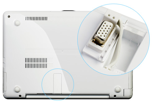 That gets you Intel's Atom N280 processor running at 1.66GHz, 1GB of RAM and a 160GB hard-drive, together with a 10.1-inch 1024 x 600 LED-backlit display. Connectivity includes WiFi b/g/n, Bluetooth 2.1+EDR and two USB 2.0 ports; there's also an ethernet port hidden behind a trick swivel-down cover. Since there's no room for a standard VGA port, ASUS fit a mini-VGA port instead; however, there's also a pull-out adapter hidden in the 1008HA's underbelly.