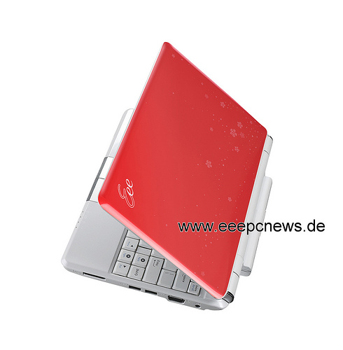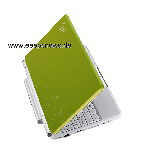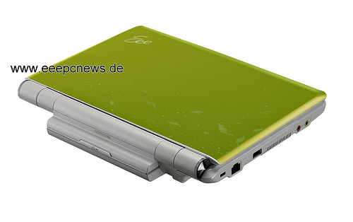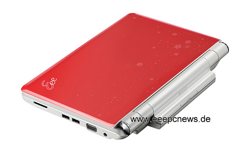 The battery is a 6-cell pack, rather than the 4-cell that ships as standard with the Eee PC 900HA. Meanwhile the case is available in nice, sober black or some particularly vivid shades of red and green. Otherwise there's the usual 8.9-inch display, VGA output, trio of USB 2.0 ports, memory card slot and audio in/out.