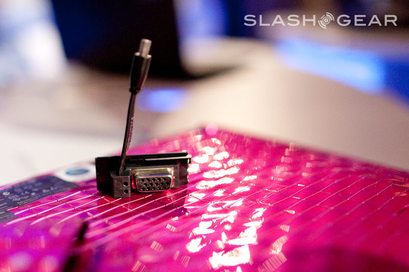 Aside from the casing design – it's also available in metallic brown – the Karim Rashid Eee PC 1008P mainly differs from its Seashell predecessors by virtue of the removable battery, Pine Trail processor, larger HDD and speedier WiFi. Intel's Atom N450, 250GB and 802.11n are all onboard, together with gigabit ethernet and Bluetooth 2.1, while a nifty little VGA adapter dongle lurks underneath. The battery is only a 3-cell pack, and ASUS aren't saying exactly how long it might last nor when you'll be able to pick up the 1008P yourself.