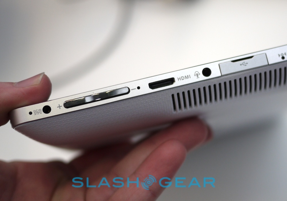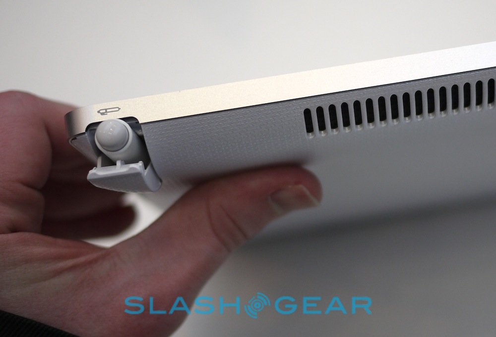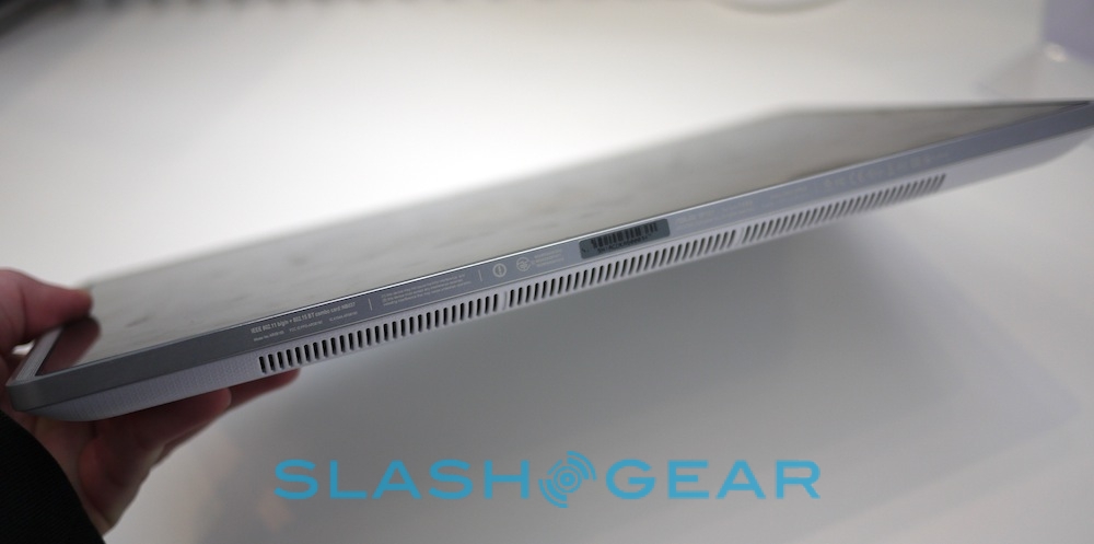 Compared to the similarly keyboard-free Eee Pad Transform, the EP121 is a fair amount thicker. That's because it has to fit in a lot more active cooling – three edges have slots for vents and speakers – since the Core i5 processor runs hotter than NVIDIA's Tegra 2 on the new Eee Pad range. It's still surprisingly light, although the sheer width of it means holding with one hand and tapping with the other can get uncomfortable after a while. Better to cradle the Eee Slate in the crook of your arm instead, or use the bundled folio case which flips open to form a stand.