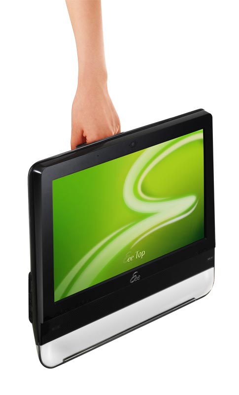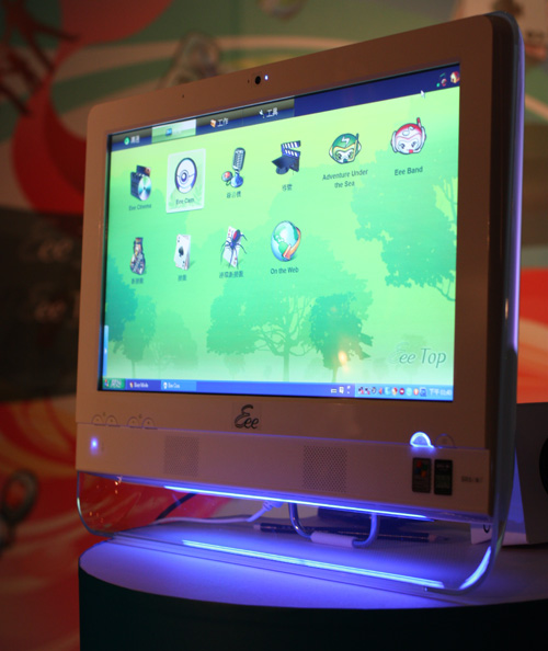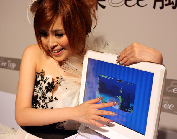 As promised, ASUS have held a glittering launch for the new Eee Top touchscreen all-in-one desktop PC. Despite having to suffer the indignities of being poked at by models with surprisingly long nails, the Eee Top held up well; Engadget China report that it feels as sturdy as most other EeePC machines, and that the touchscreen is responsive and doesn't require more than the most casual of grazes.