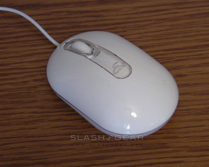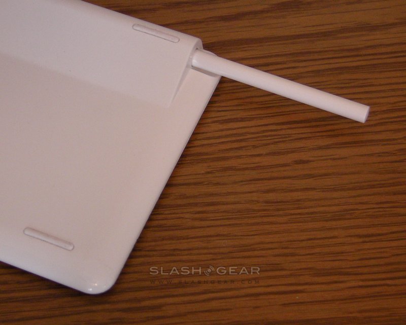 The mouse is less impressive, a lightweight blue LED model with scroll-wheel. It's usable, and the design echoes the white & transparent plastic of the Eee Top's build, but nothing special. As for the stylus, it's a basic 14cm stick of plastic with a tapered nib; the only thing worth noting is the strength of the bay spring, which is enough to launch the pen across the desk.