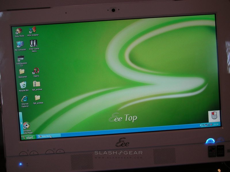 The display uses a resistive touchscreen, rather than either a capacitive panel such as on recent Tablet PCs from HP and Dell, or an active digitizer as on most other Tablet PCs. That means the screen responds to any touch, rather than requiring a finger or a special stylus, but only one point of contact rather than multitouch. Responsiveness in the Eee Top's case is good, with only a light touch required, and it soon becomes second nature to stab at the screen rather than reach for the mouse.