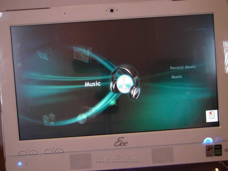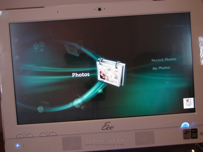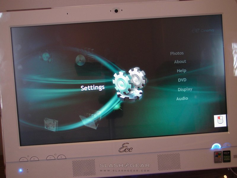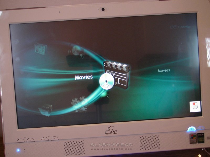 As on their netbooks, ASUS has given the Eee Top three different power modes: super performance, high performance and power saving. These can be switched between either through the Easy Home interface or by the Fn+Space shortcut. In practice, there's little noticeable difference between the three; nothing can disguise the fact that the Eee Top is no media editing or 3D gaming machine. As a media extender though, with a high-speed network connection, it comes into its own; another of the ASUS apps is Eee Cinema, a media-center style GUI for accessing audio and video. It's here you'll most miss an optical drive, as Eee Cinema even has an option to watch DVDs. Still, sound quality from the built-in speakers is reasonable.