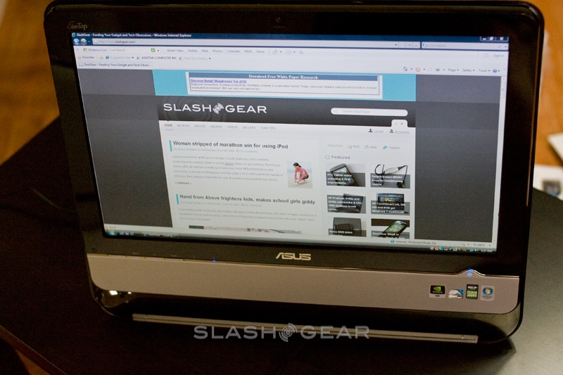 The display itself is bright and crisp, and despite being unable to show Full HD 1920 x 1080 resolution video it did a great job with 720p footage. While lacking a touchscreen, we found that because of the extra screen inches over the ET1602 we sat further back from the newer Eee Top, and thus it made less sense to reach out and try to tap at it.