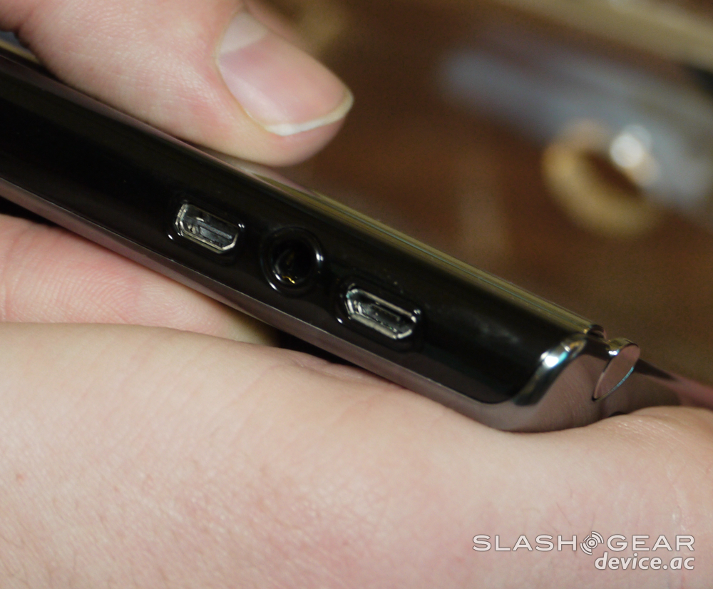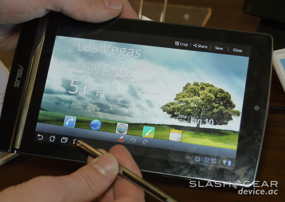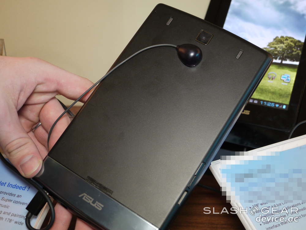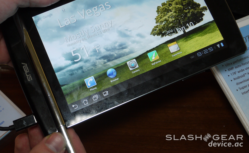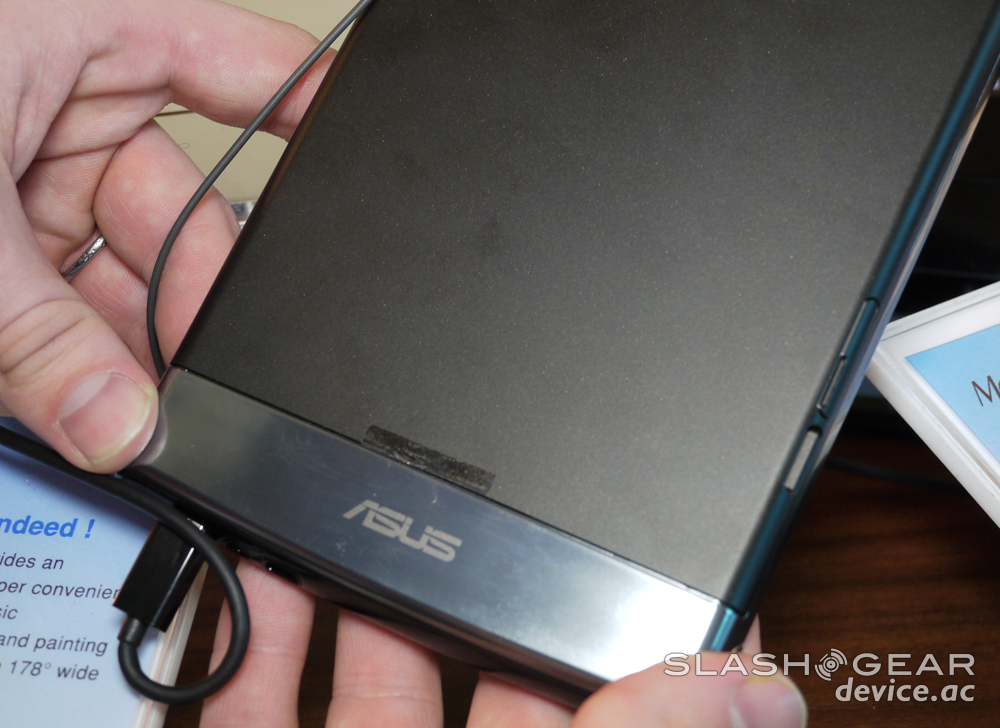 This device has 1GB of low-power DDR2 memory inside and is 400g weight in total – the entire device is 200 x 118 x 12.95 mm and feels nice to hold with smooth sides all around. Storage inside is also eMMC 16GB and comes with 8GB of lifetime ASUS WebStorage. The battery inside is a massive 4400 mAh which ASUS says will give you 8.5 hours of video playback, and the whole device can be used as a mobile phone if you like.