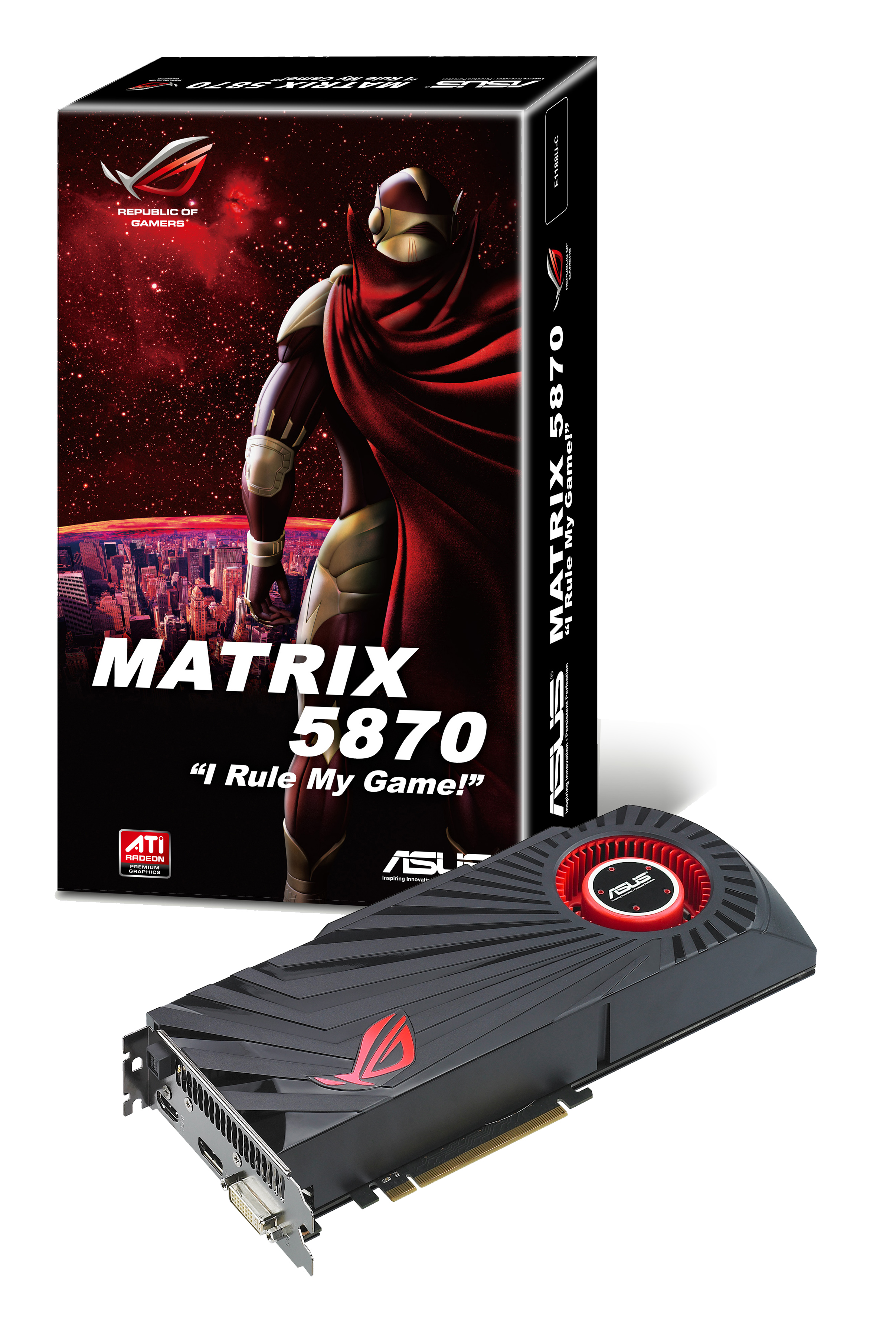 Engage Total Game Control with the Confidence of Sheer ASUS ROG MATRIX 5870 PowerASUS Republic of Gamers (ROG) pulls another feat with a massive graphics card packed to the gills with extensive overclocking and game-defining features.