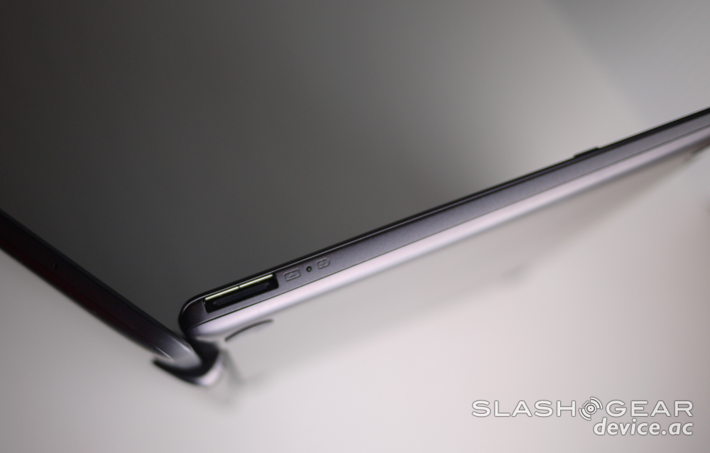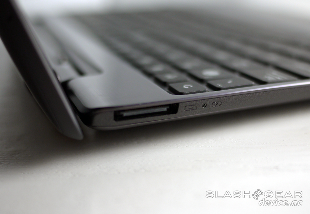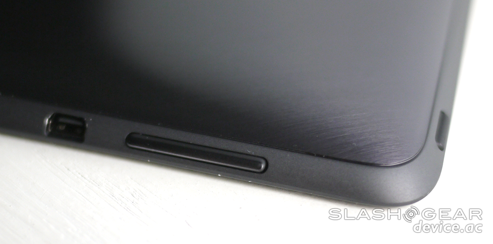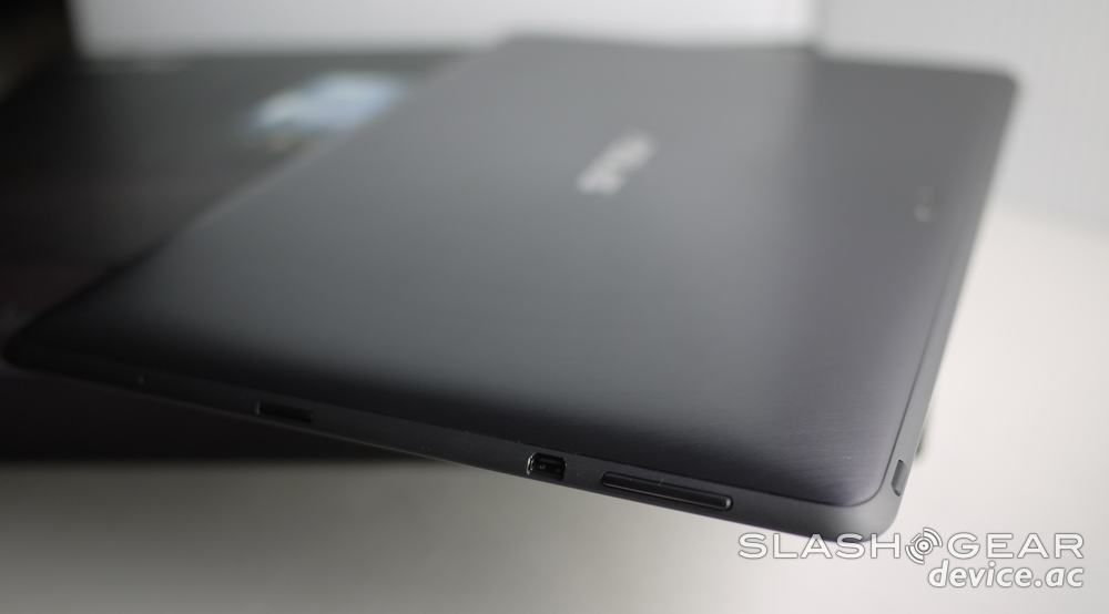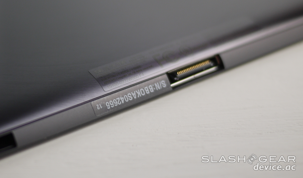 This tablet is made of Gorilla Glass, radial-spun aluminum, and a whole bunch of varied innards that we'll never come in contact with. The only moving parts on the tablet are the removable covers for each of the ports, the volume bar, and the power/lock button. Unlike the original Transformer whose volume and power buttons have been prone to get a bit loose after extended usage, these are set nicely in place like a high quality product's buttons should.