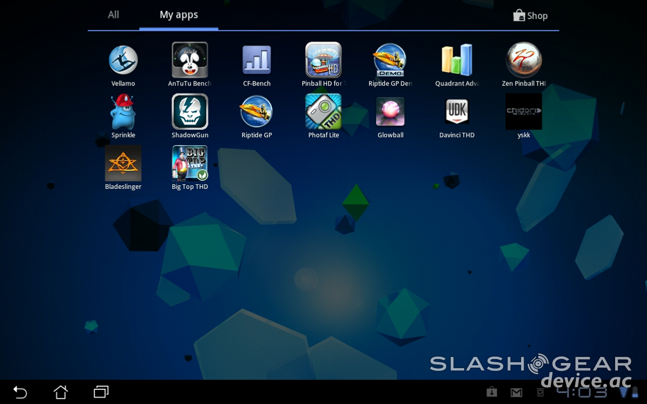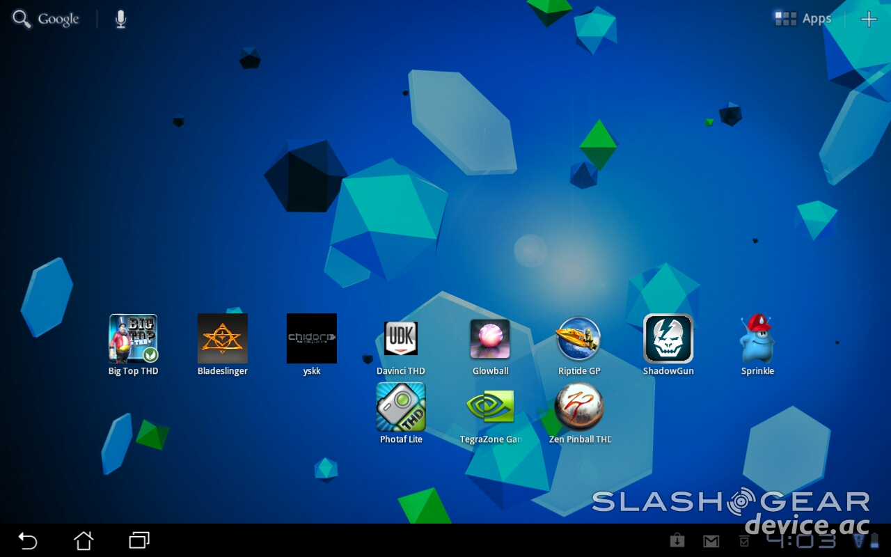 Then it's time to head down deeper into the settings on this tablet / transforming tablet computer, noting especially how NVIDIA wasn't about to let us take a peek at their Tegra 3 processor embedded inside without testing out a plethora of new games. The games will be shown in future hands-on videos, mind you, so let us know which ones you want to see first and I'll be sure to fire them up.