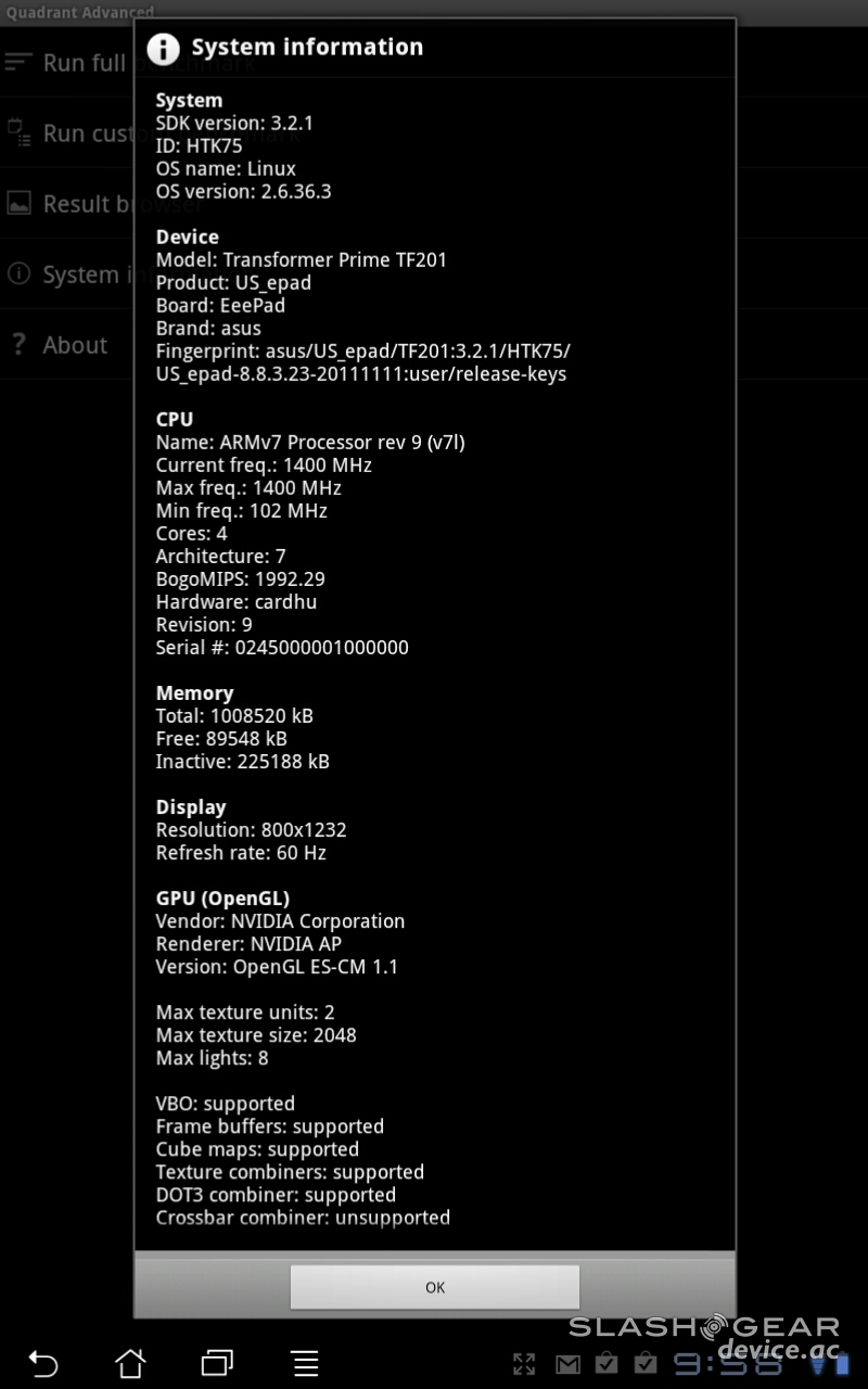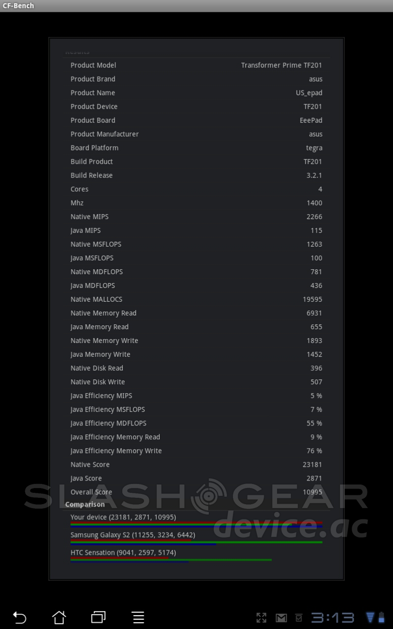 Check out our first round of benchmarks here, and note that each of the following is on the tablet without the keyboard dock attached — also head to the gallery below to see the improvement this tablet has made over the original transformer if you wish.