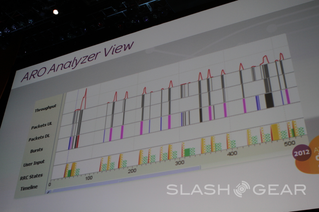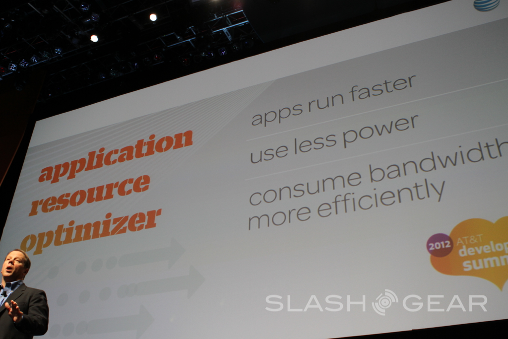 The folks at AT&T have detailed a set of tools that'll allow apps to run faster, use less power, and consumer bandwidth more efficiently, as they say. There are two components to this system: a data logger and an offline resource analyzer. You take a device, collect data, and transfer the data to a PC which shows the data dissected to the level you wish. This took is currently available to developers through AT&T's developer site, it already working with Pandora and Zynga, Tom Conrad and Jeff Zakrzewski of those groups speaking on the tool.