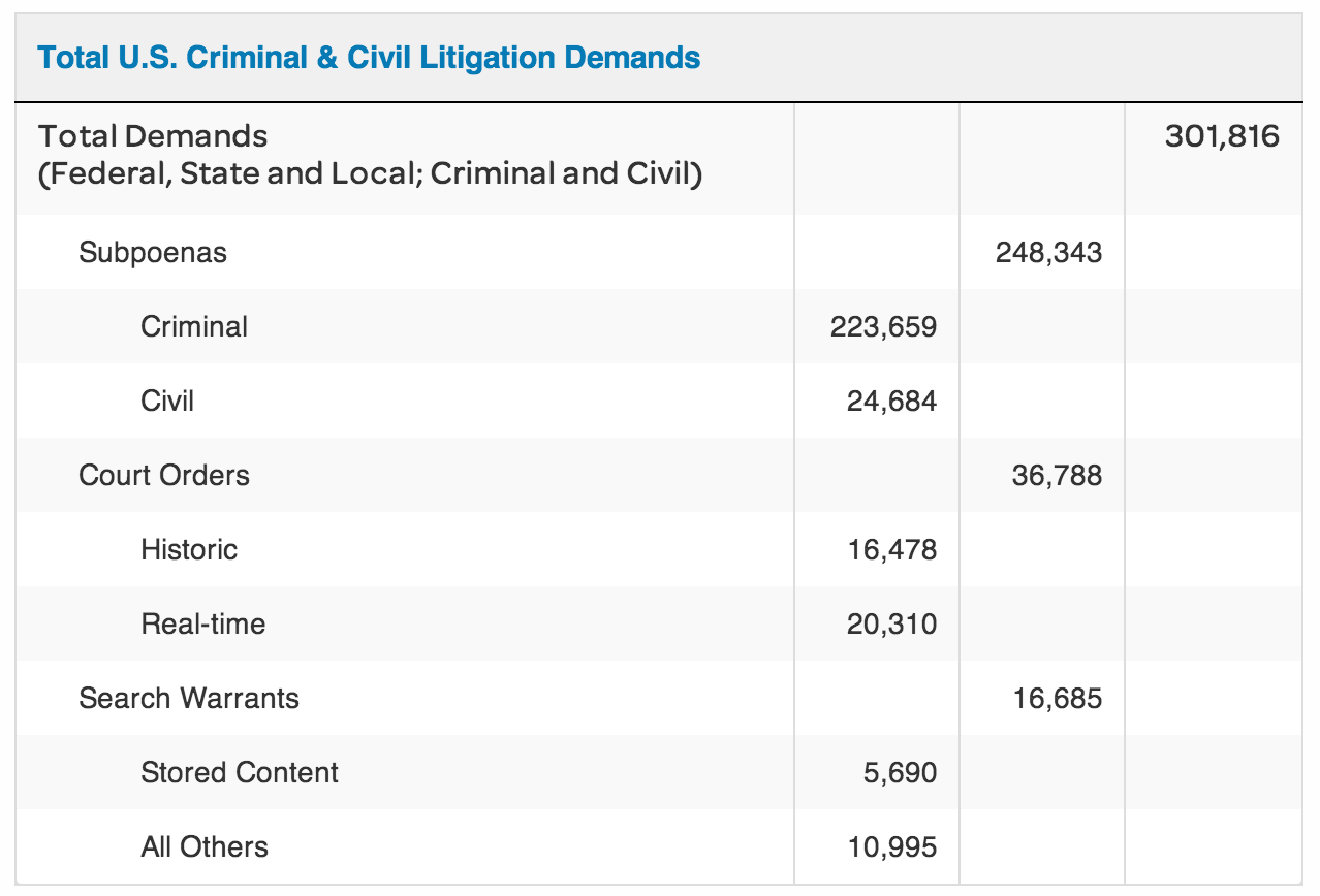 AT&T DOJ Transparency Report Shows 300k+ Government Data Demands