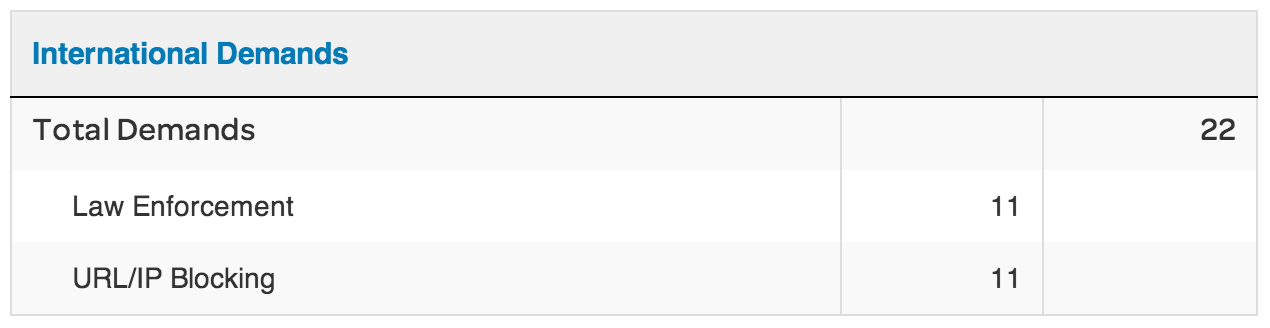 With National Security Demands, AT&T suggests that they've had a total number of between 2,000 and 2,999 requests between January 1st and December 31st of 2013. Therein they've had requests of between 4,000 and 4,999 customer accounts – so quite a few more requests made of each customer – not just one apiece.