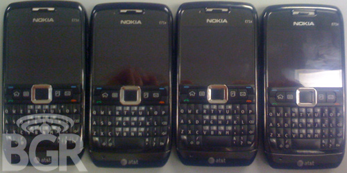 The black AT&T branded Nokia E71x spotted in the wild last November has obviously been breeding, hence the four devices queued up here. According to the Boy Genius Report, they're actually queuing up at an AT&T store, freshly unboxed and waiting for their March 24th launch.After the cut, pricing and more details