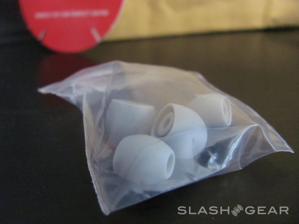 Aside from the buds, you'll find a tiny zip plastic package with 6 rubber earbud covers (3 sets) – a set of these will need to be applied to the main earbuds before you jam them in your ears. You'll see there's three user guides, each one in a different language, and a single quick-start guide. And that's about it! Look for a full review of these sassy little buds in about a week and a half (a little further out than normal because of the quickly approaching holidays.) Hooray!