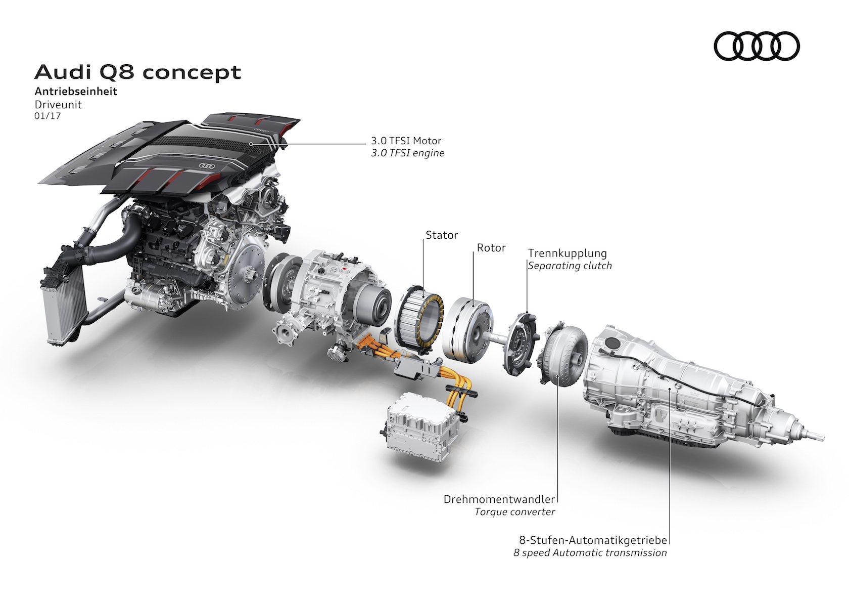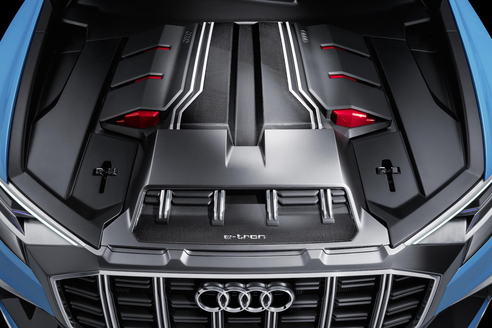 That's not to say it couldn't, mind. There's a hybrid powertrain with a 3.0-liter TFSI engine and electric motors, good altogether for 330 kW (402 HP) and 516 lb-ft. of torque. Quattro all-wheel drive is fitted, along with air-suspension with 3.5-inches of adjustable ride height. Smarts behind the scenes can look to the route ahead to figure out when to use electric power and when to use gas.