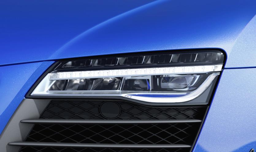 Audi says that each of its headlight modules gets a laser, twice as powerful as a regular LED light on the normal R8. A single laser module, in fact, consists of four laser diodes; they push light through a phosphor converter to get the tone of white right; above 37.3mph, a laser spot kicks in for even better visibility.